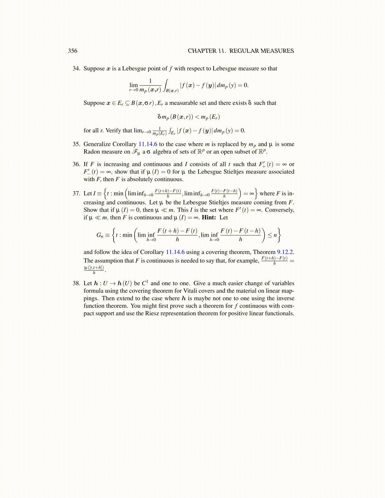 35. Generalize Corollary 11.14.6 to the case where m is replaced by mp and µ is someRadon measure on Fµ a σ algebra of sets of Rp or an open subset of Rp.