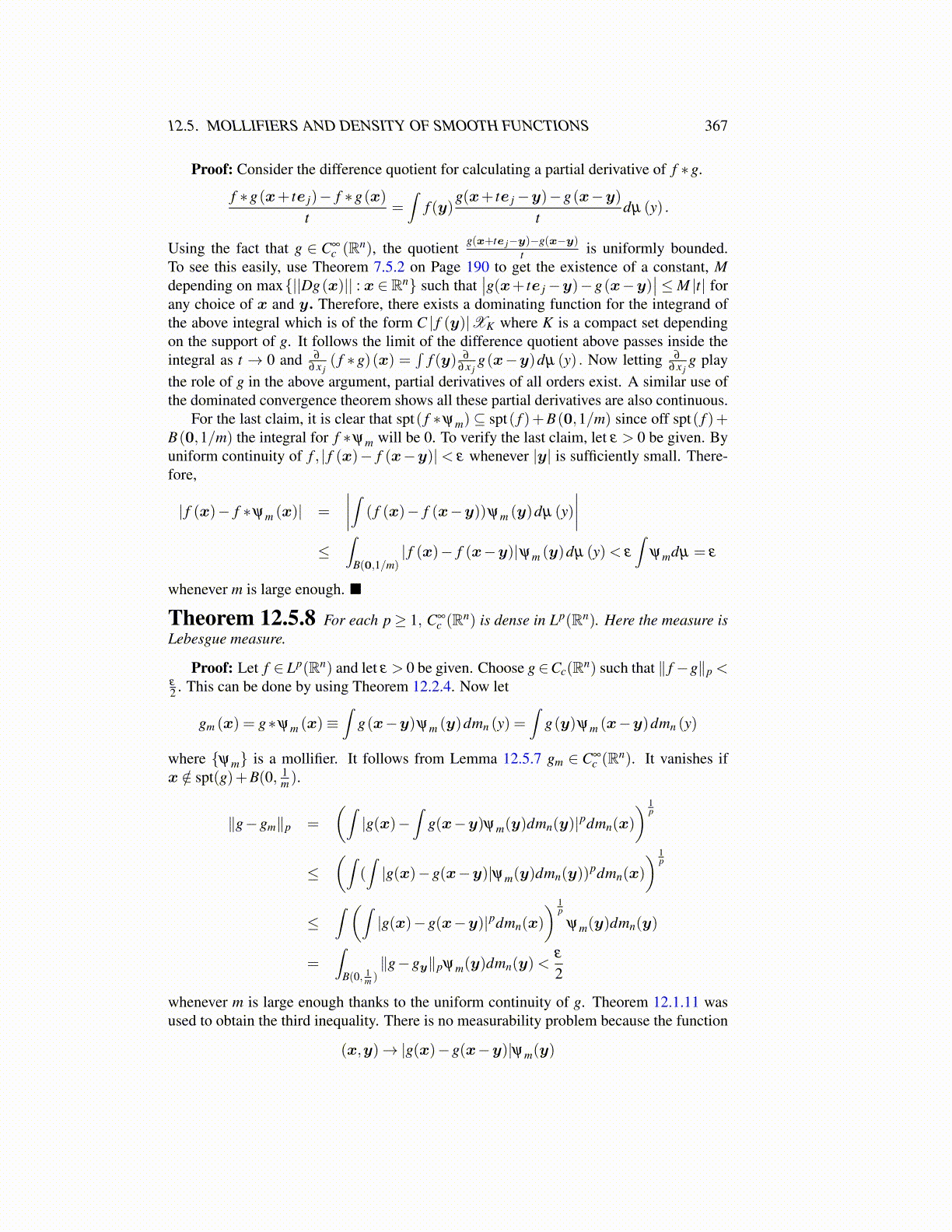 Theorem 12.5.8 For each p≥ 1, C∞c (Rn) is dense in Lp(Rn). Here the measure is