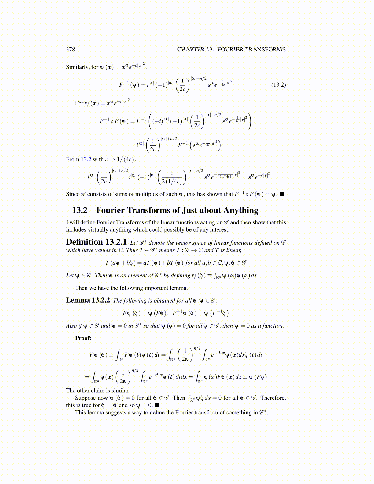 13.2 Fourier Transforms of Just about AnythingI will define Fourier Transforms of the linear functions acting on G and then show that thisincludes virtually anything which could possibly be of any interest.