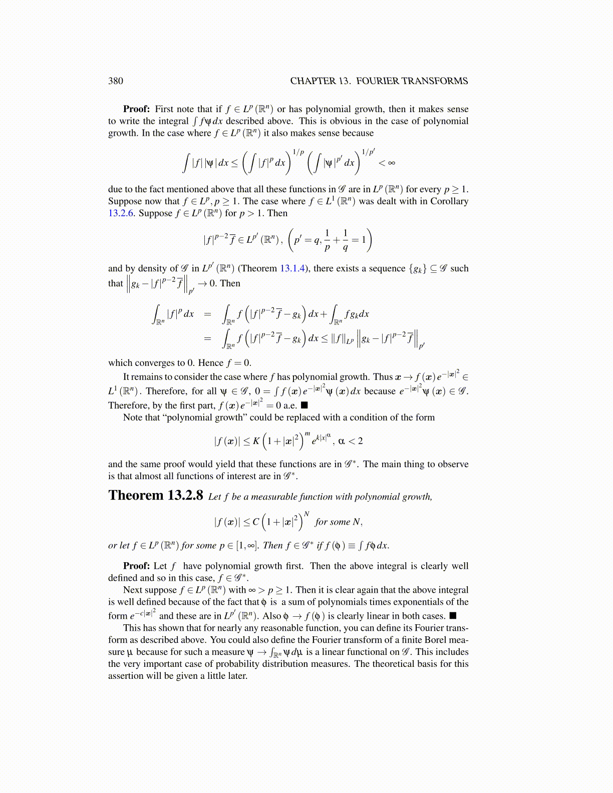 Theorem 13.2.8 Let f be a measurable function with polynomial growth,