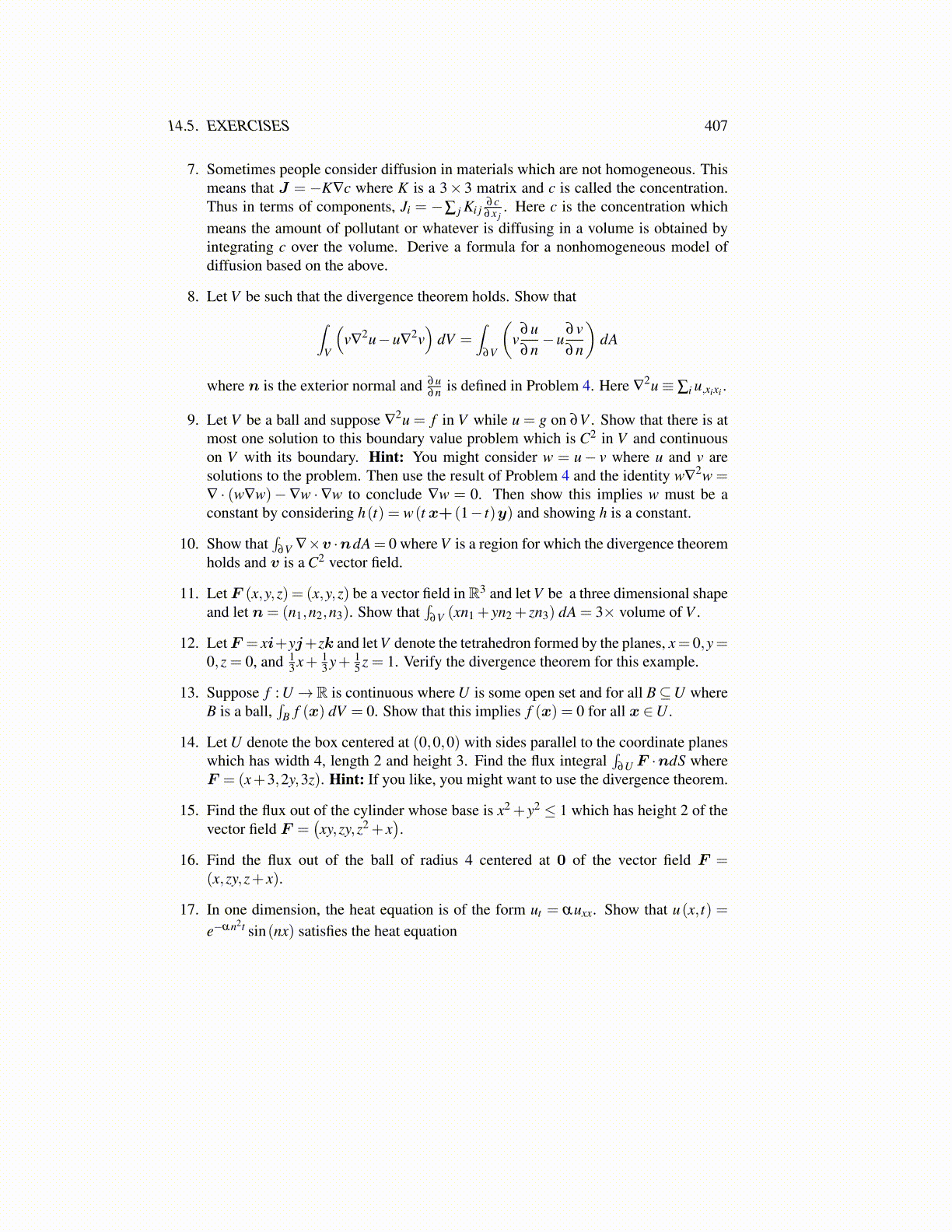 7. Sometimes people consider diffusion in materials which are not homogeneous. Thismeans that J = −K∇c where K is a 3× 3 matrix and c is called the concentration.Thus in terms of components, Ji = −∑ j Ki j