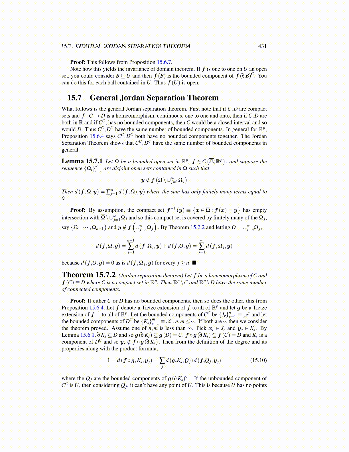 15.7. GENERAL JORDAN SEPARATION THEOREM 431