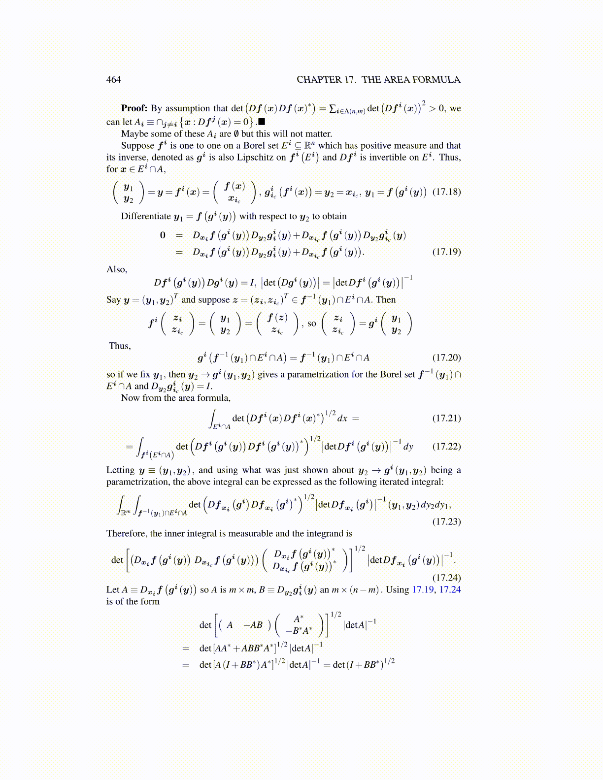 Maybe some of these Ai are /0 but this will not matter.Suppose f i is one to one on a Borel set Ei ⊆ Rn which has positive measure and that