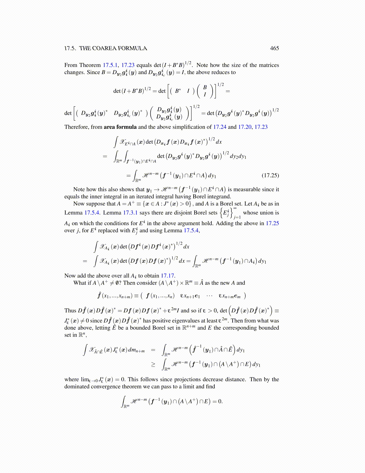 J∗ε (x) ̸= 0 since Df̂ (x)Df̂ (x)∗ has positive eigenvalues at least ε2m. Then from what wasdone above, letting Ê be a bounded Borel set in Rn+m and E the corresponding boundedset in Rn,∫