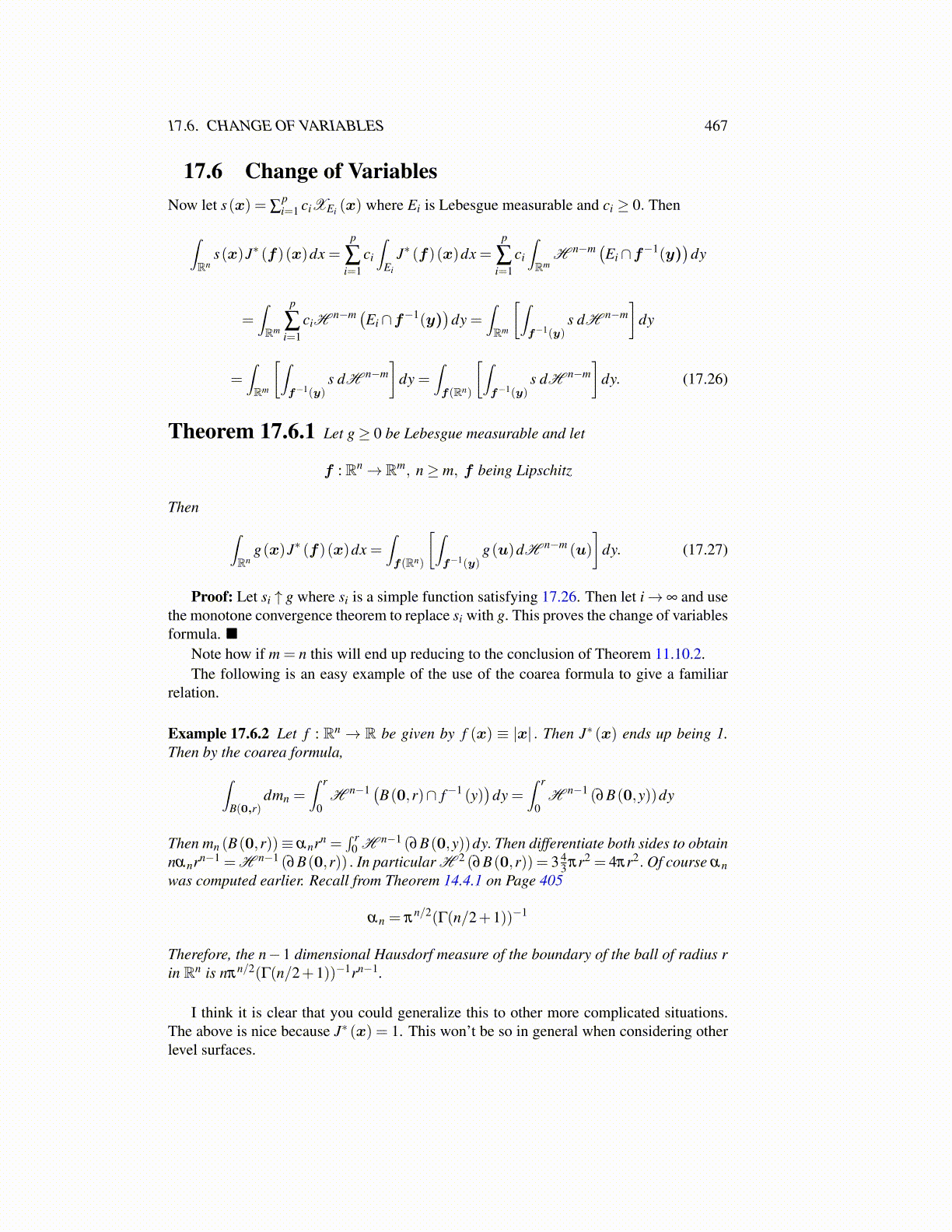 3 πr2 = 4πr2. Of course αnwas computed earlier. Recall from Theorem 14.4.1 on Page 405