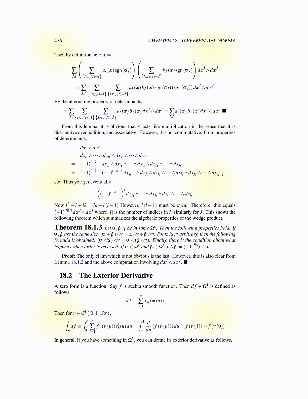 Proof: The only claim which is not obvious is the last. However, this is also clear fromLemma 18.1.2 and the above computation involving dxI ∧dxJ . ■