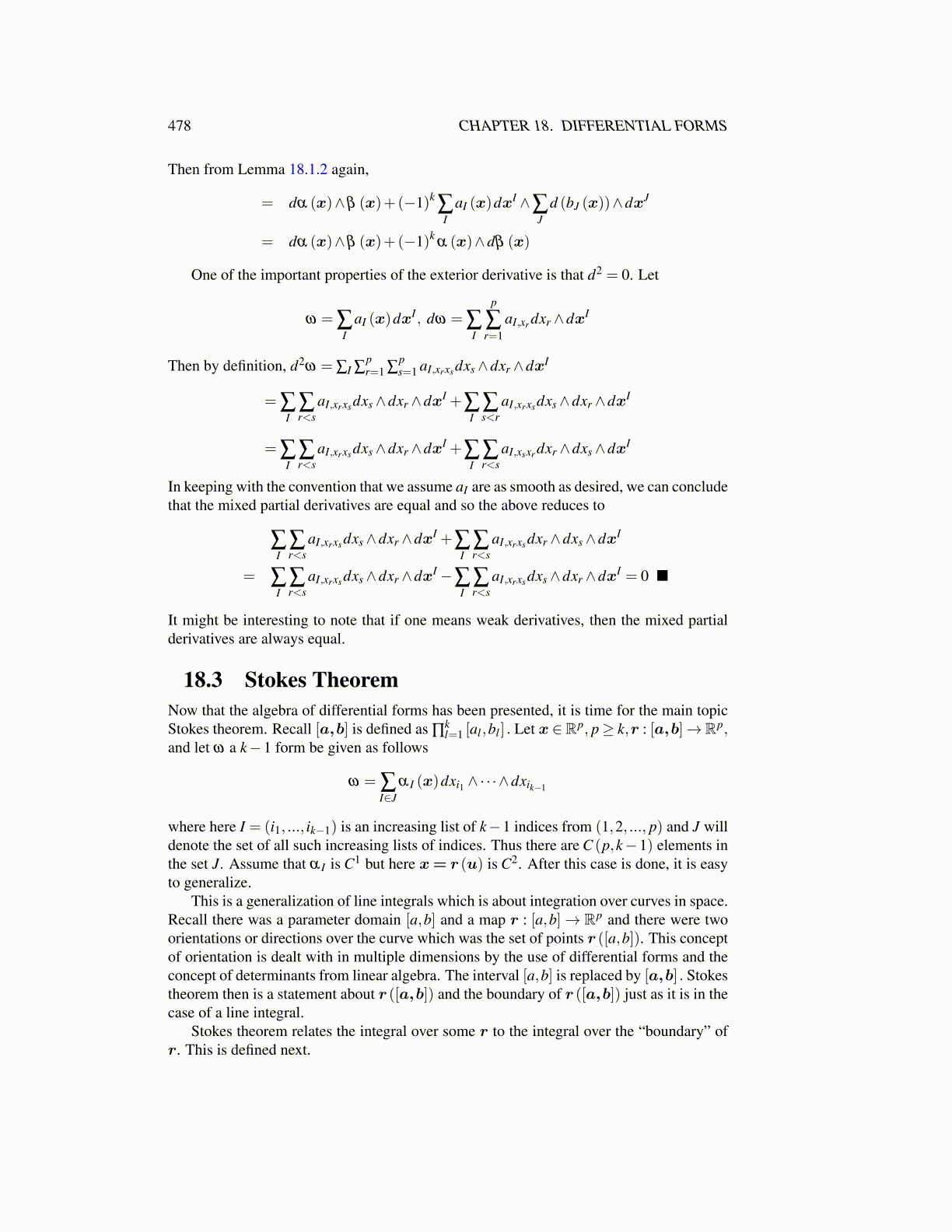 18.3 Stokes TheoremNow that the algebra of differential forms has been presented, it is time for the main topicStokes theorem. Recall [a,b] is defined as ∏