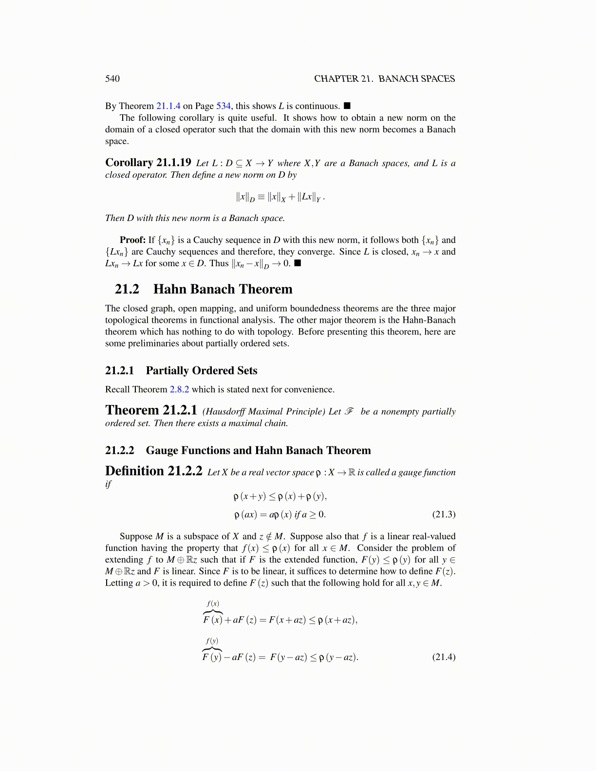 21.2.2 Gauge Functions and Hahn Banach Theorem