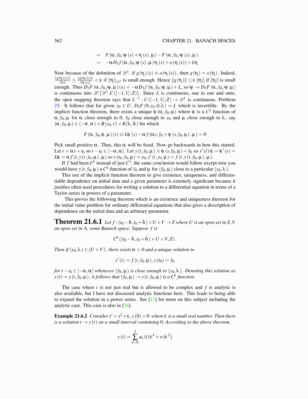 for t− t0 ∈ [−α,α] whenever (ỹ0,µ) is close enough to (y0,λ ). Denoting this solution asy(t) = y(t, ỹ0,µ) , it follows that (ỹ0,µ)→ y(t, ỹ0,µ) is a Ck function.