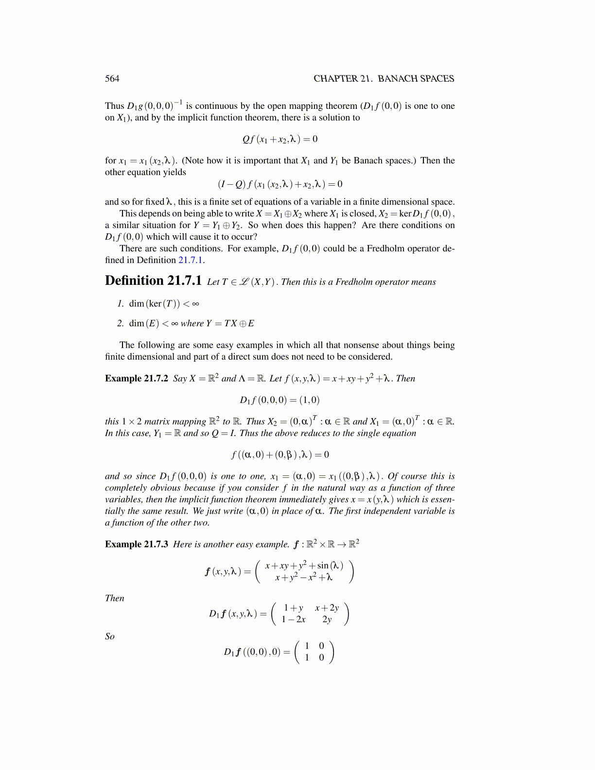 There are such conditions. For example, D1 f (0,0) could be a Fredholm operator de-fined in Definition 21.7.1.