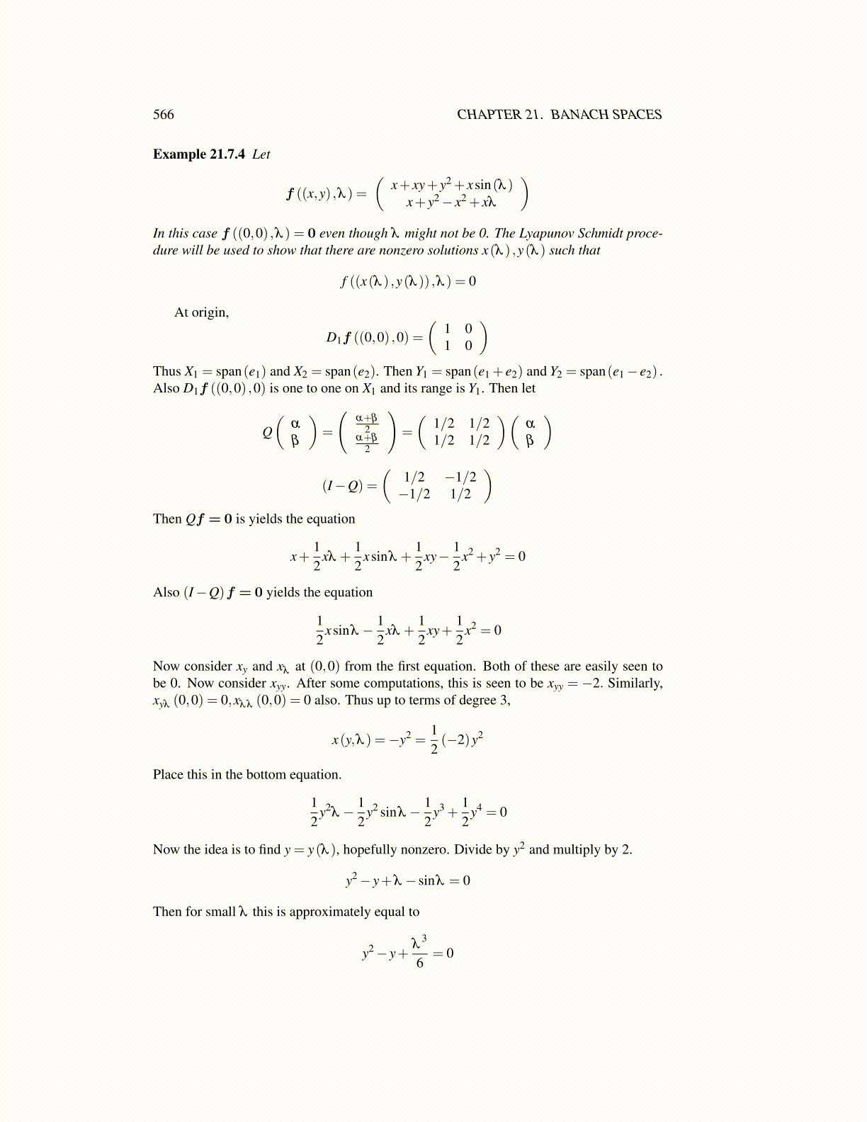 )In this case f ((0,0) ,λ ) = 0 even though λ might not be 0. The Lyapunov Schmidt proce-dure will be used to show that there are nonzero solutions x(λ ) ,y(λ ) such that