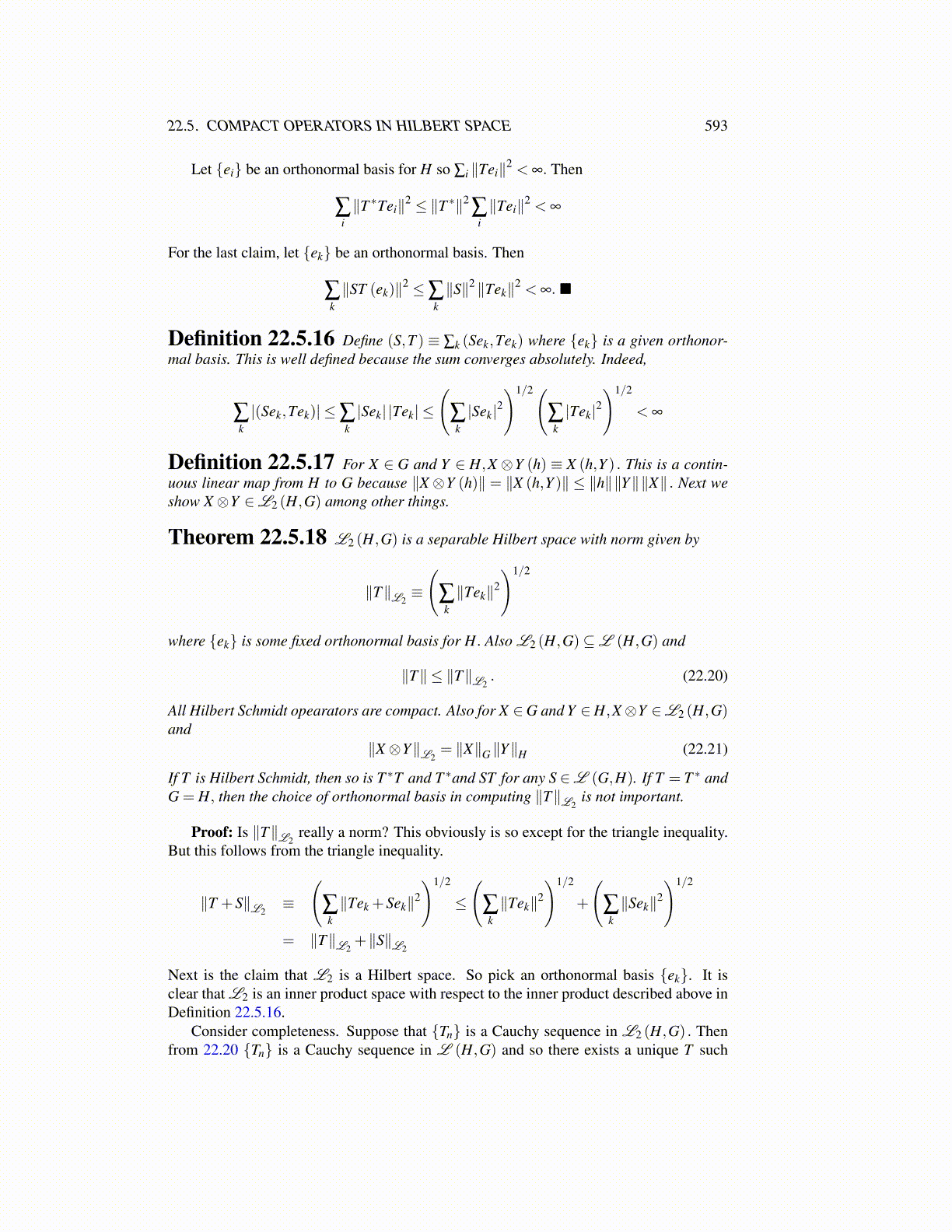 Definition 22.5.16 Define (S,T ) ≡ ∑k (Sek,Tek) where {ek} is a given orthonor-mal basis. This is well defined because the sum converges absolutely. Indeed,