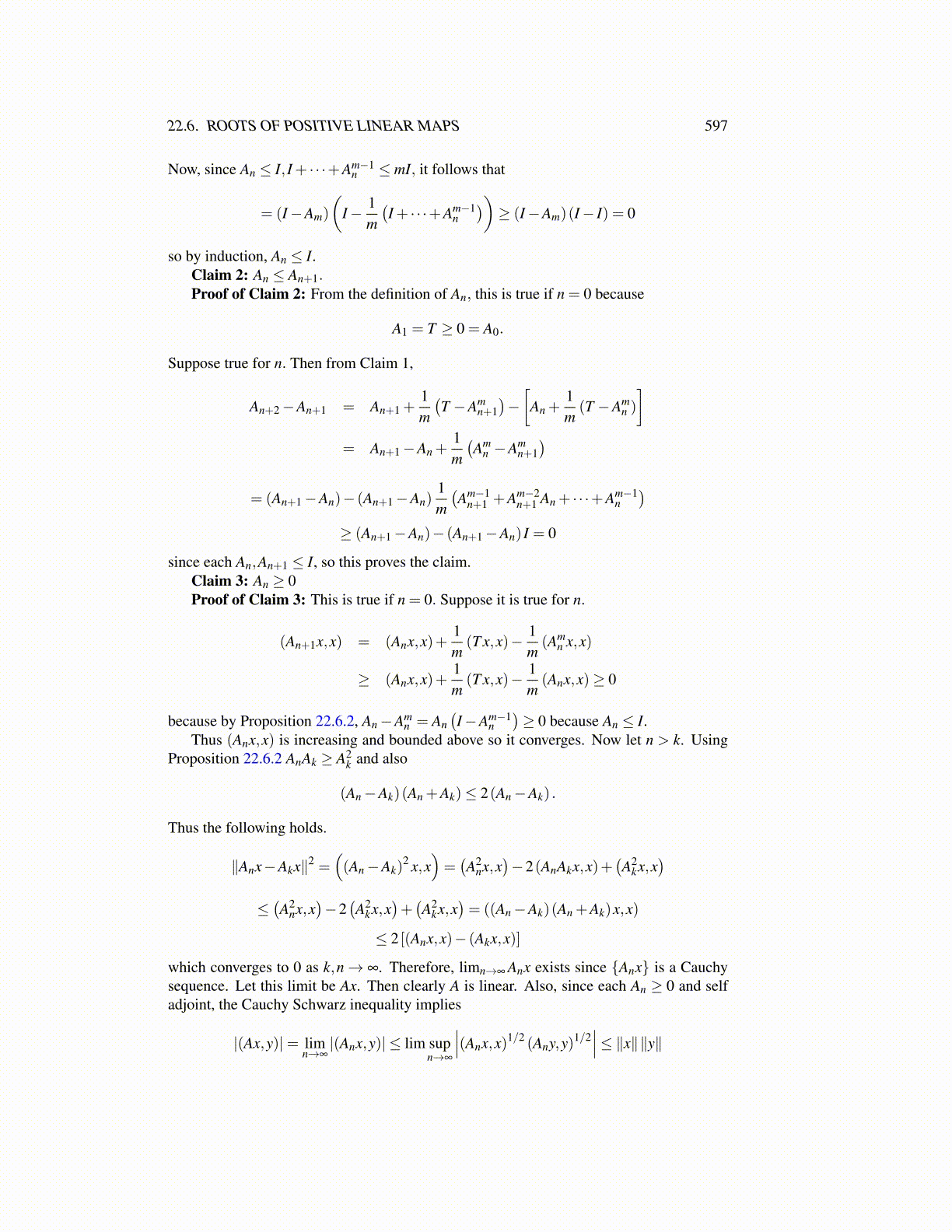 Thus (Anx,x) is increasing and bounded above so it converges. Now let n > k. UsingProposition 22.6.2 AnAk ≥ A2