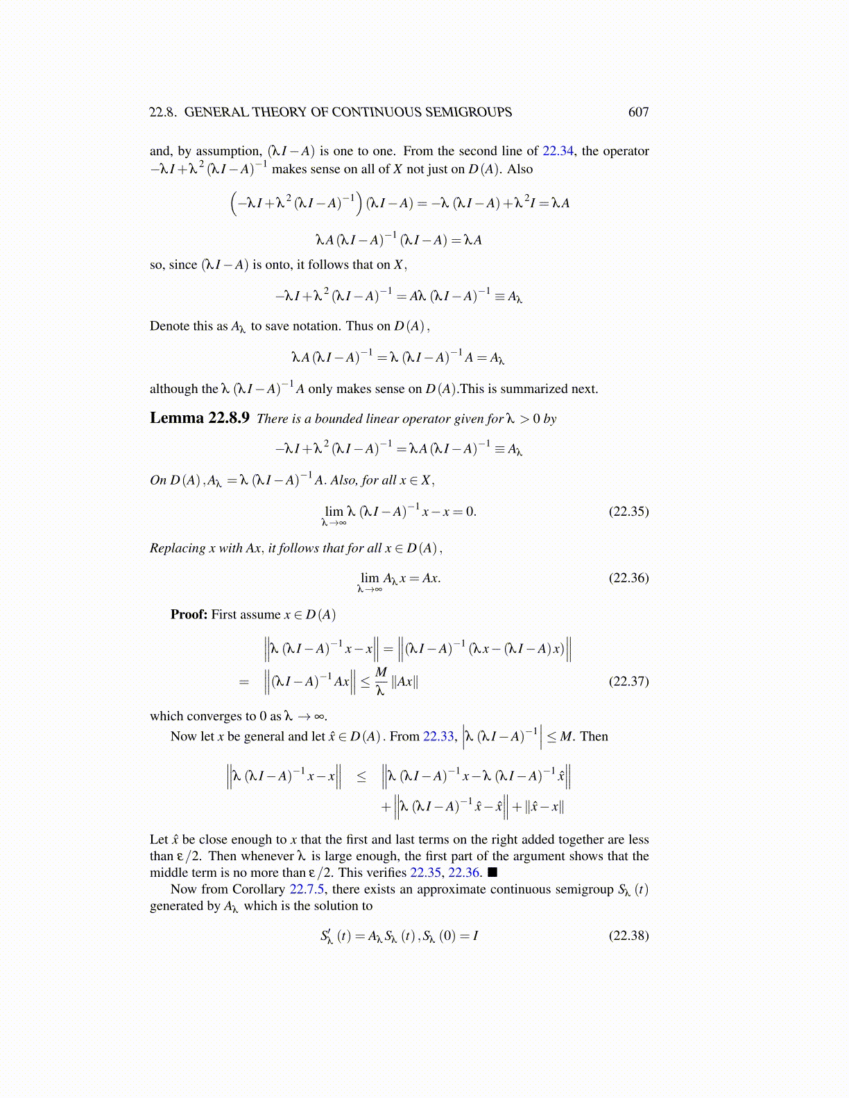 Now from Corollary 22.7.5, there exists an approximate continuous semigroup Sλ (t)generated by Aλ which is the solution to