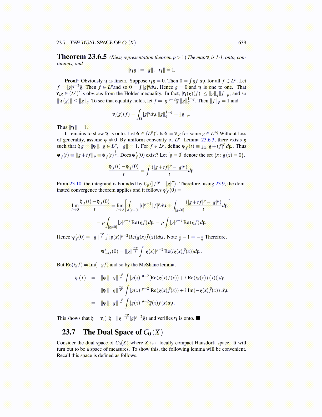 Theorem 23.6.5 (Riesz representation theorem p> 1) The map η is 1-1, onto, con-tinuous, and