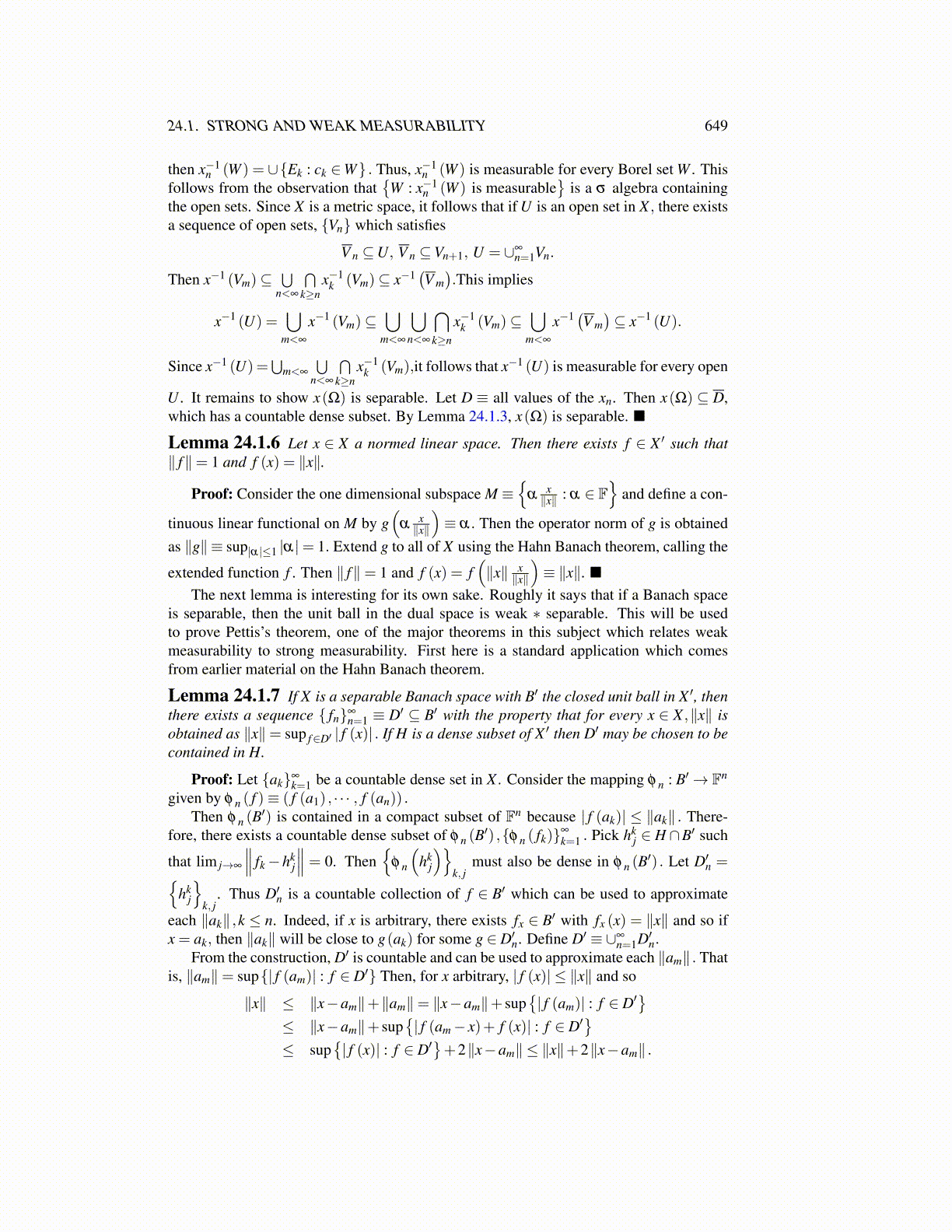 Lemma 24.1.7 If X is a separable Banach space with B′ the closed unit ball in X ′, thenthere exists a sequence { fn}∞