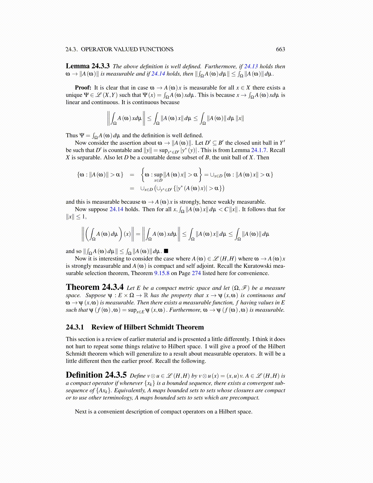Lemma 24.3.3 The above definition is well defined. Furthermore, if 24.13 holds thenω →∥A(ω)∥ is measurable and if 24.14 holds, then ∥