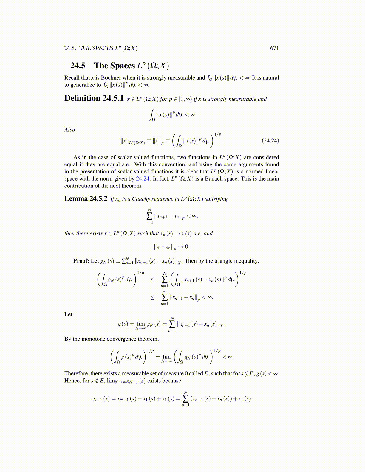 Definition 24.5.1 x ∈ Lp (Ω;X) for p ∈ [1,∞) if x is strongly measurable and∫Ω