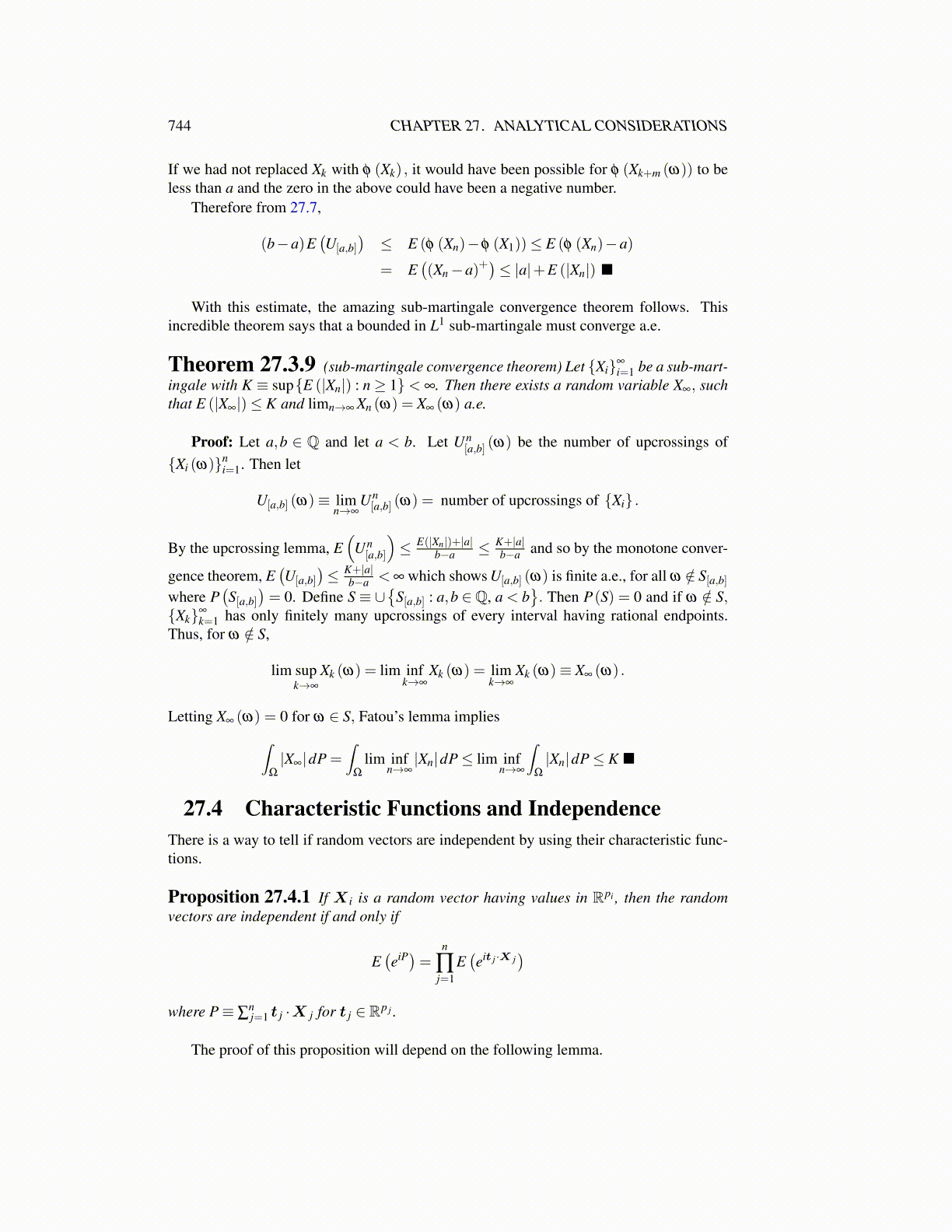 Theorem 27.3.9 (sub-martingale convergence theorem) Let {Xi}∞