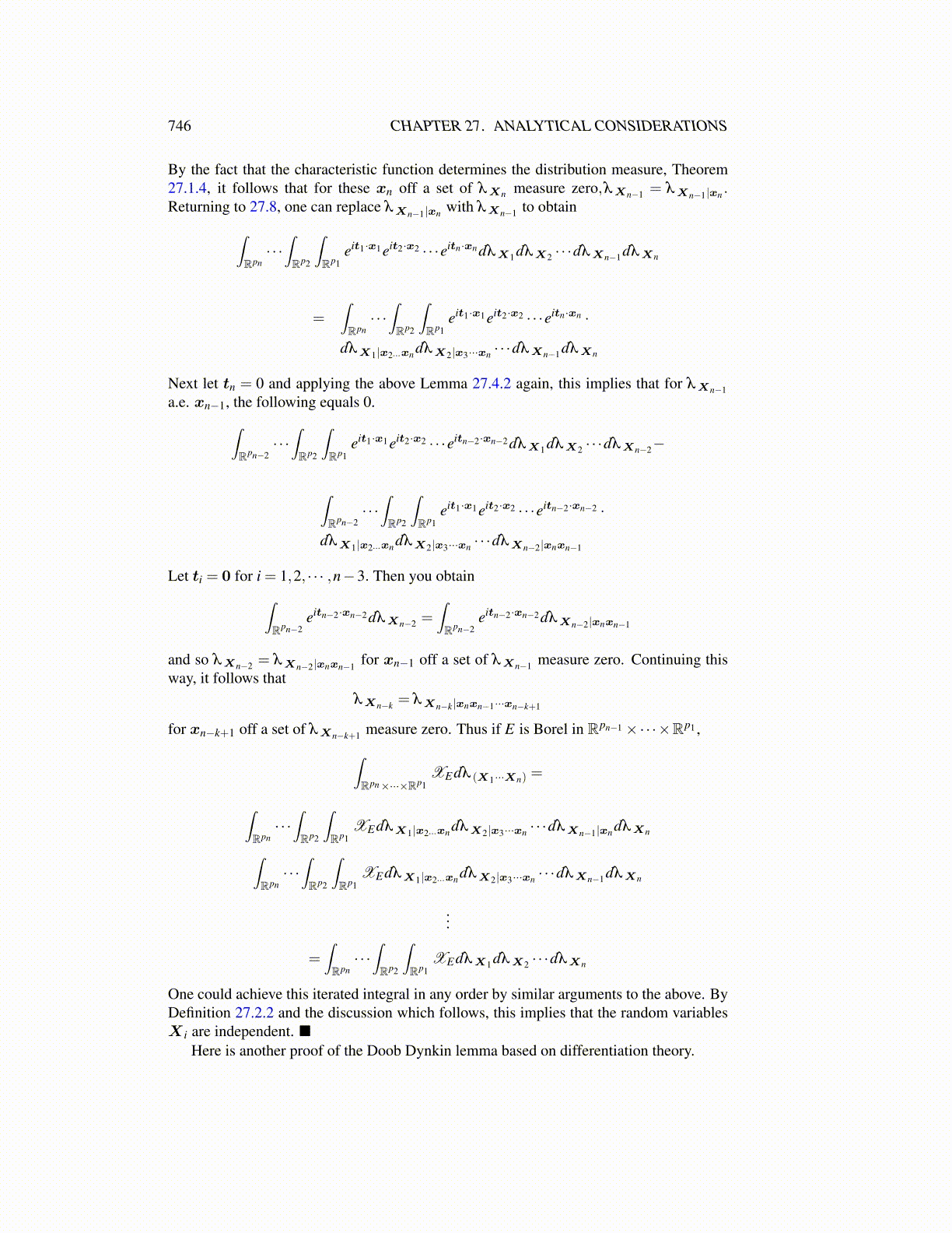 By the fact that the characteristic function determines the distribution measure, Theorem27.1.4, it follows that for these xn off a set of λXn measure zero,λXn−1 = λXn−1|xn .Returning to 27.8, one can replace λXn−1|xn with λXn−1 to obtain∫