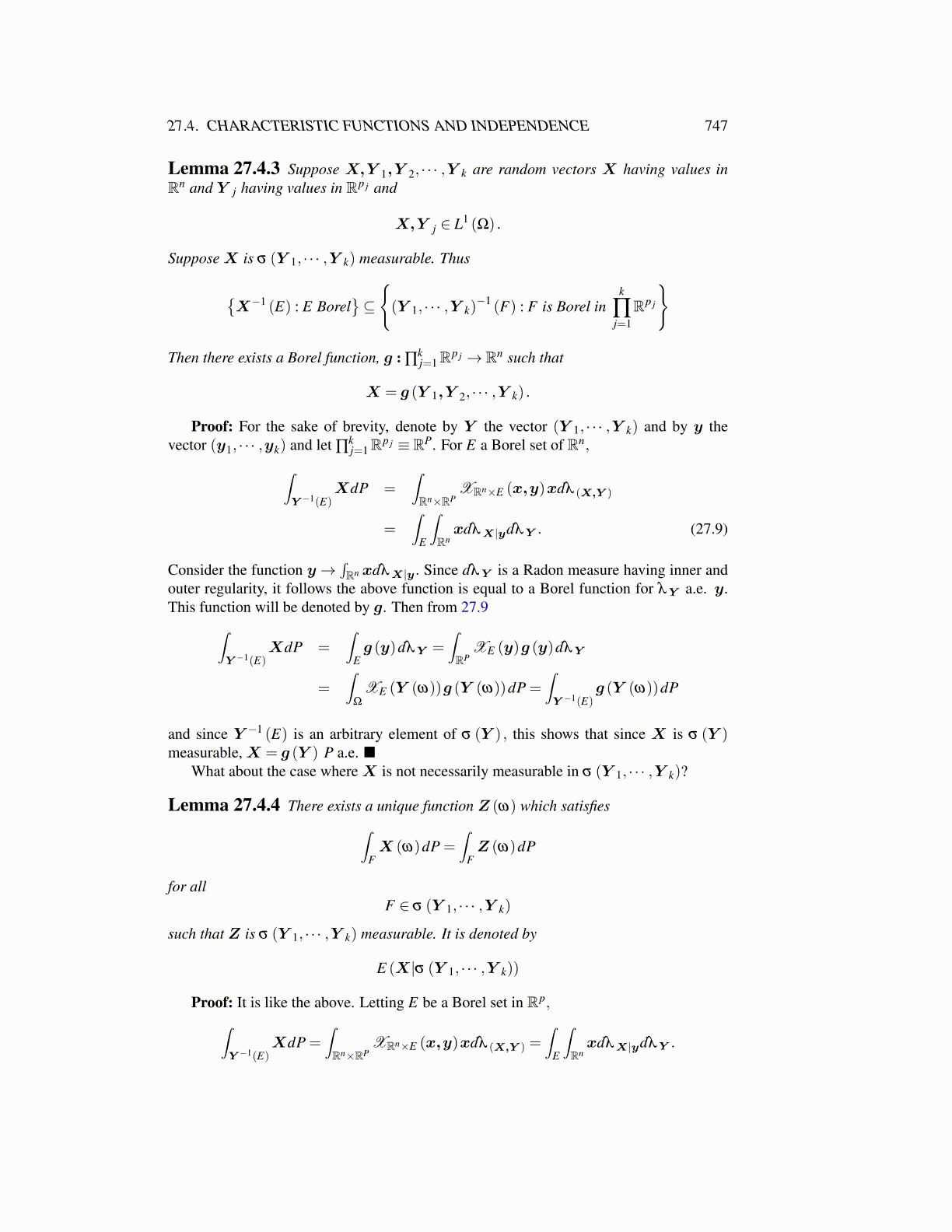 Lemma 27.4.3 Suppose X,Y 1,Y 2, · · · ,Y k are random vectors X having values inRn and Y j having values in Rp j and