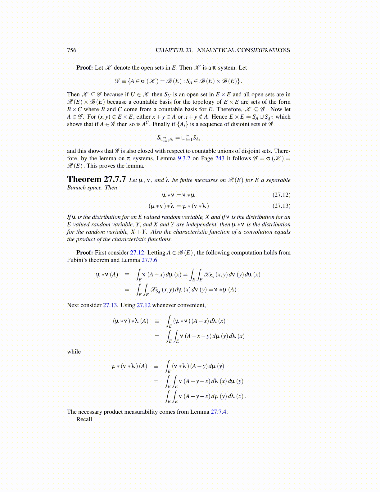 Proof: First consider 27.12. Letting A ∈B (E) , the following computation holds fromFubini’s theorem and Lemma 27.7.6