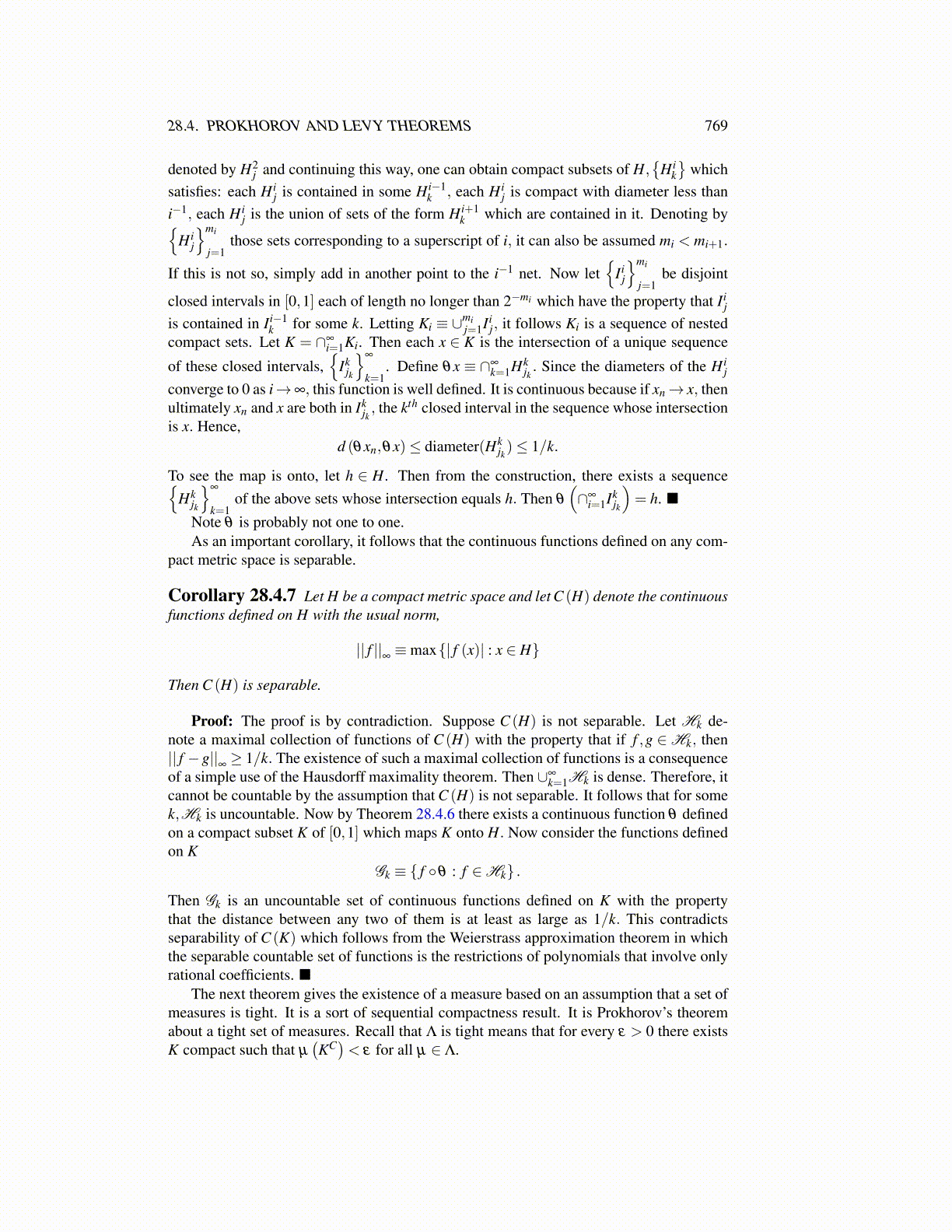 Corollary 28.4.7 Let H be a compact metric space and let C (H) denote the continuousfunctions defined on H with the usual norm,