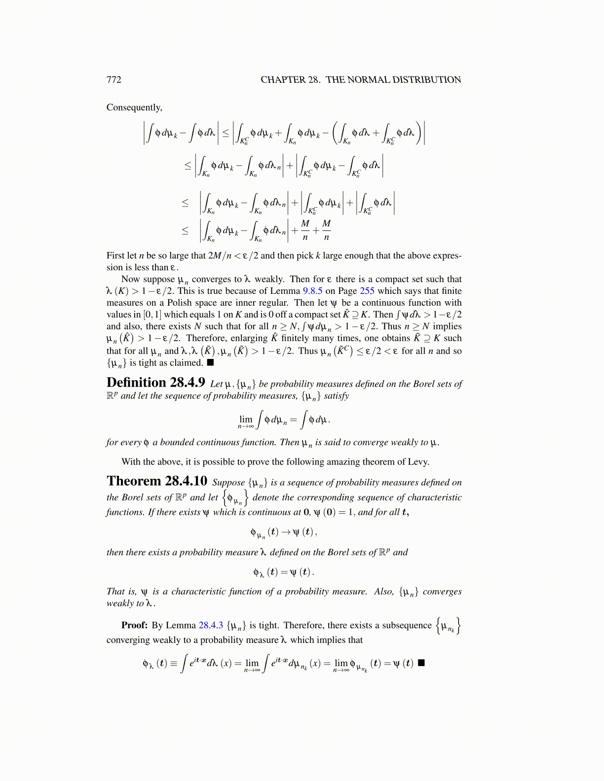 Definition 28.4.9 Let µ,{µn} be probability measures defined on the Borel sets ofRp and let the sequence of probability measures, {µn} satisfy