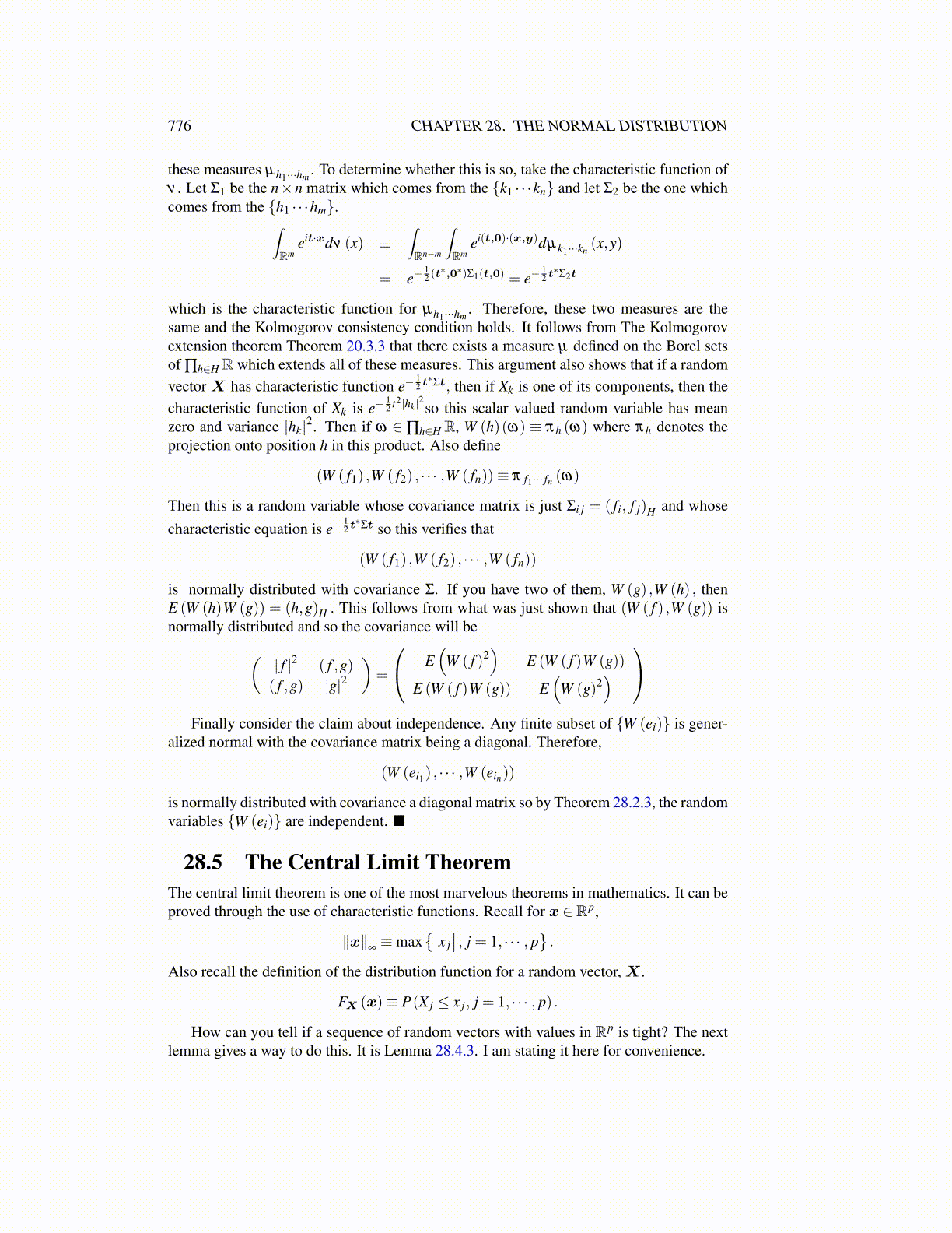 28.5 The Central Limit TheoremThe central limit theorem is one of the most marvelous theorems in mathematics. It can beproved through the use of characteristic functions. Recall for x ∈ Rp,