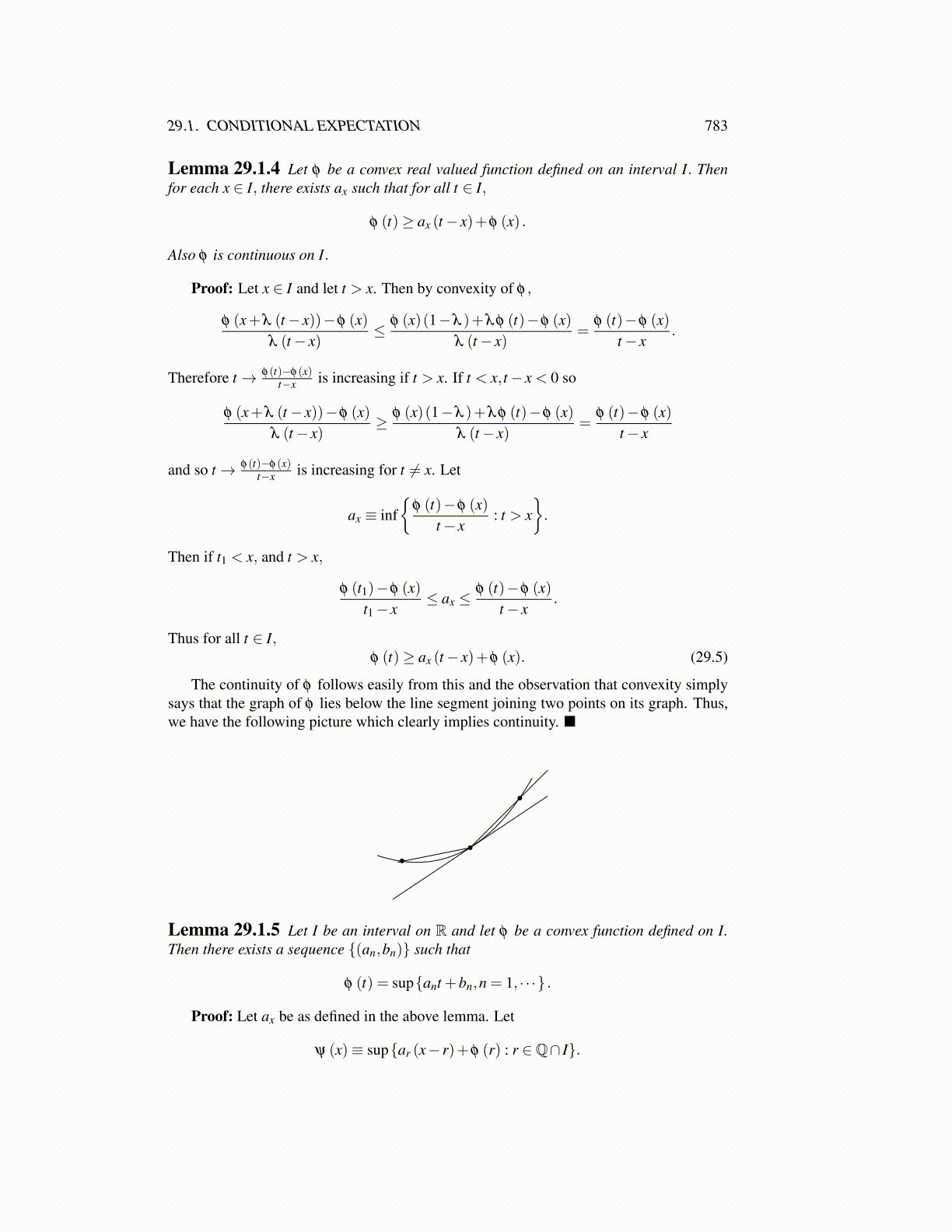 Lemma 29.1.4 Let φ be a convex real valued function defined on an interval I. Thenfor each x ∈ I, there exists ax such that for all t ∈ I,