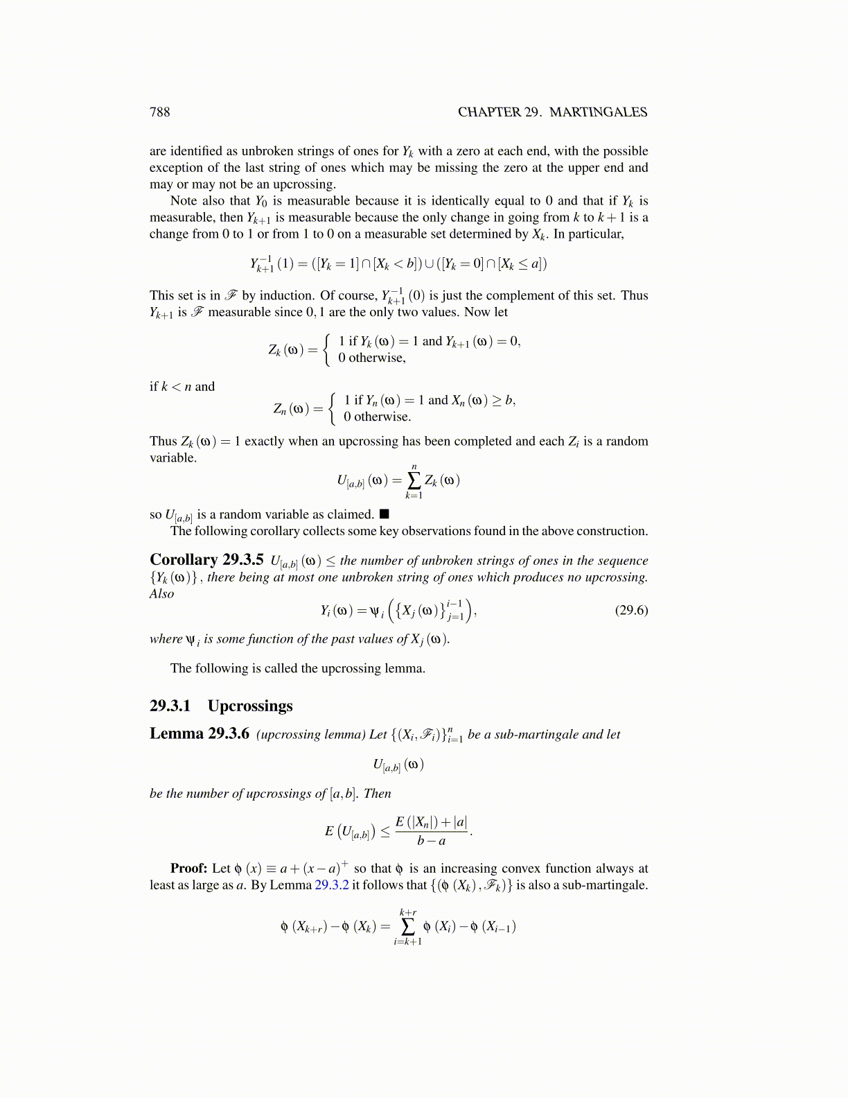Proof: Let φ (x) ≡ a+(x−a)+ so that φ is an increasing convex function always atleast as large as a. By Lemma 29.3.2 it follows that {(φ (Xk) ,Fk)} is also a sub-martingale.
