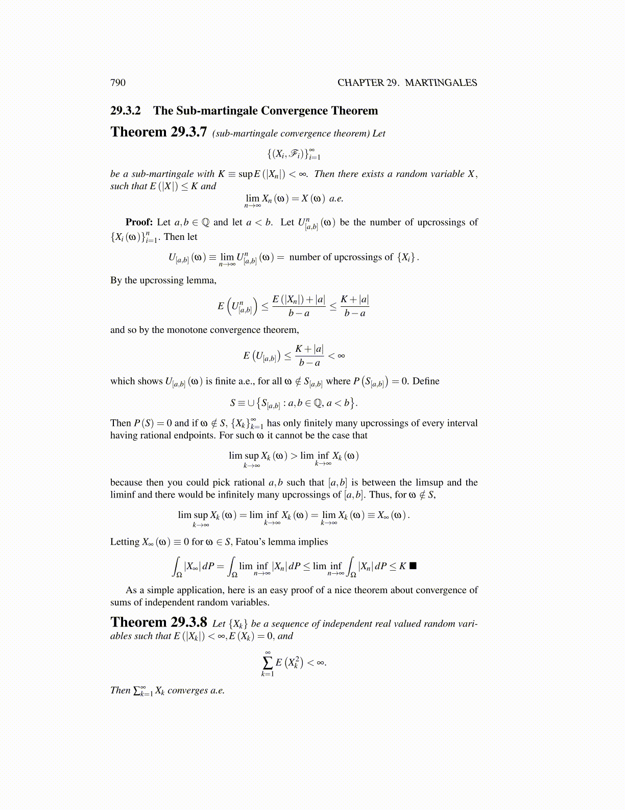 Theorem 29.3.7 (sub-martingale convergence theorem) Let