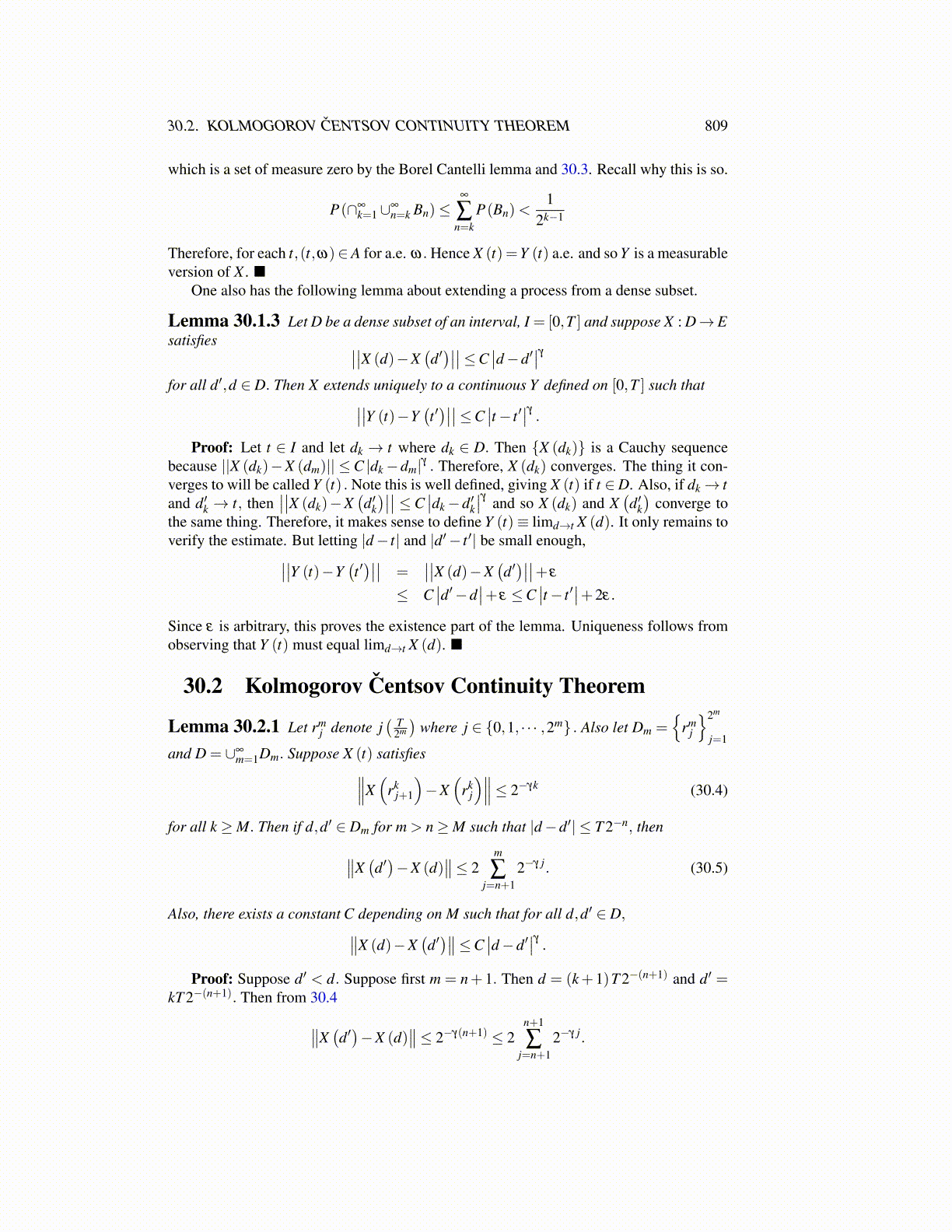 30.2. KOLMOGOROV ČENTSOV CONTINUITY THEOREM 809