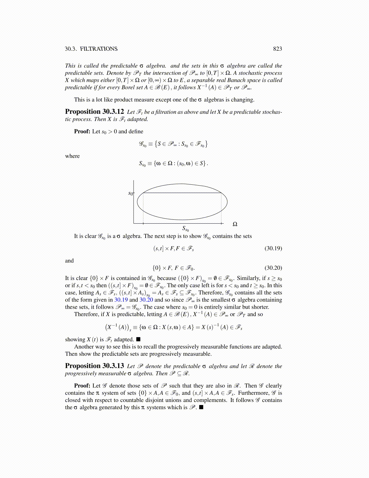 of the form given in 30.19 and 30.20 and so since P∞ is the smallest σ algebra containingthese sets, it follows P∞ = Gs0 . The case where s0 = 0 is entirely similar but shorter.