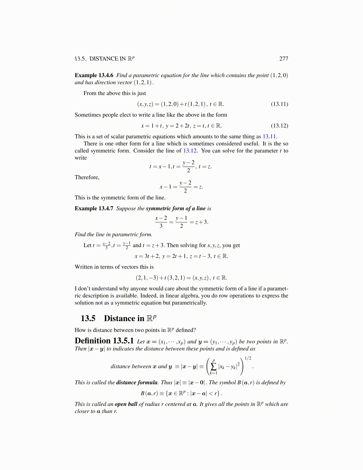 x = 1+ t, y = 2+2t, z = t, t ∈ R. (13.12)