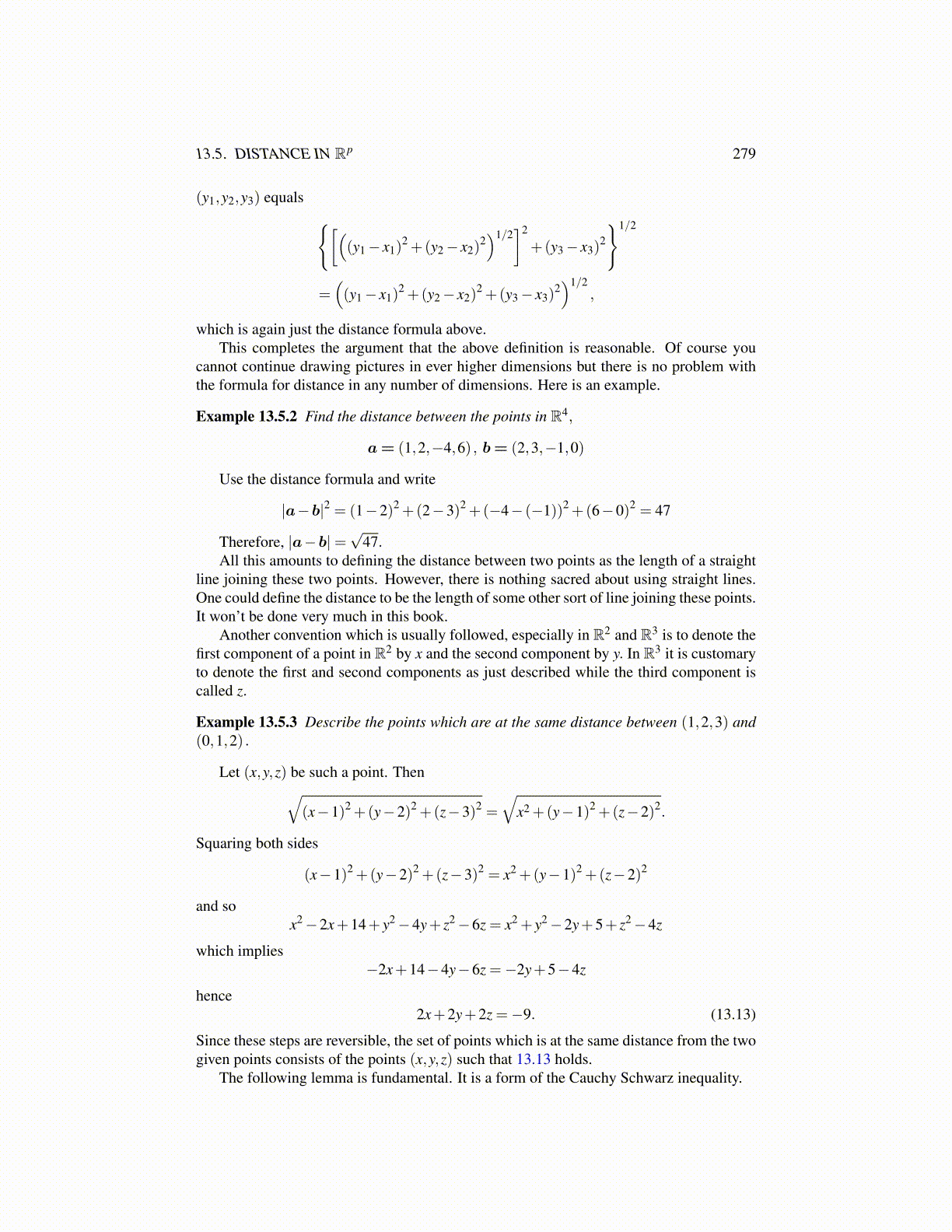 Since these steps are reversible, the set of points which is at the same distance from the twogiven points consists of the points (x,y,z) such that 13.13 holds.