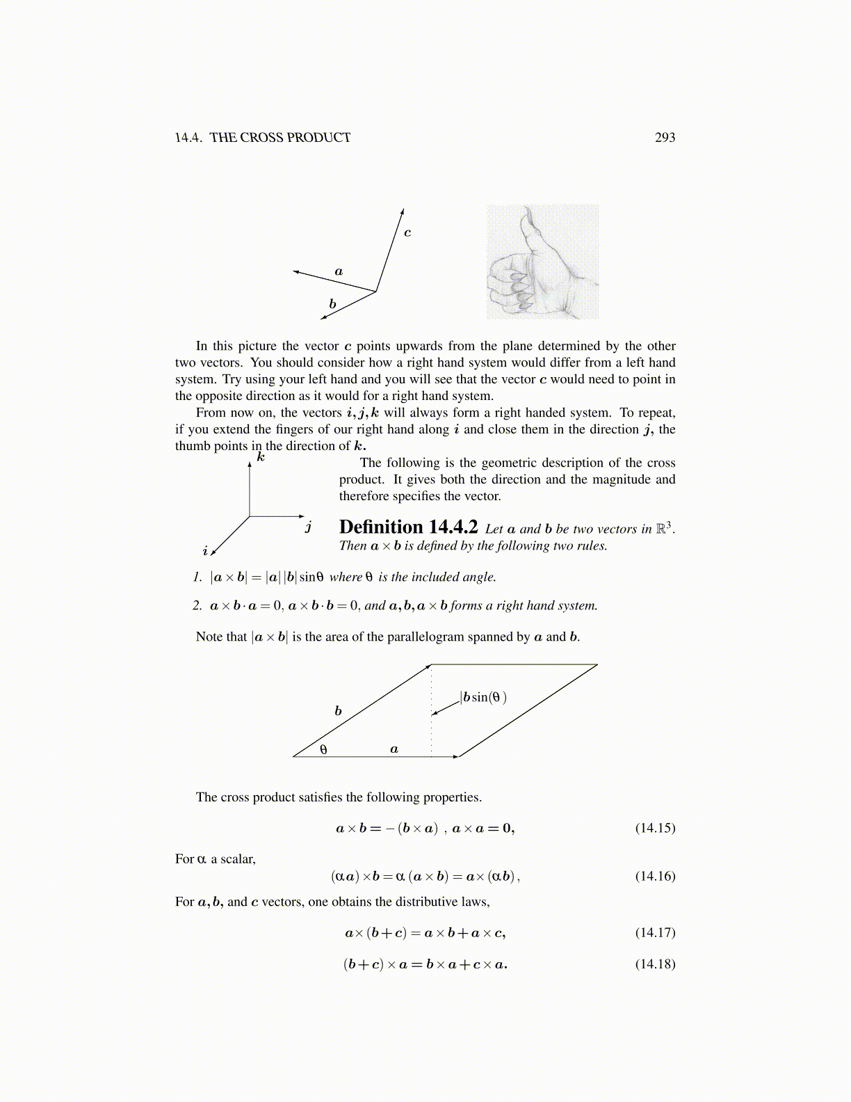 Definition 14.4.2 Let a and b be two vectors in R3. Then a×b is defined by thefollowing two rules.