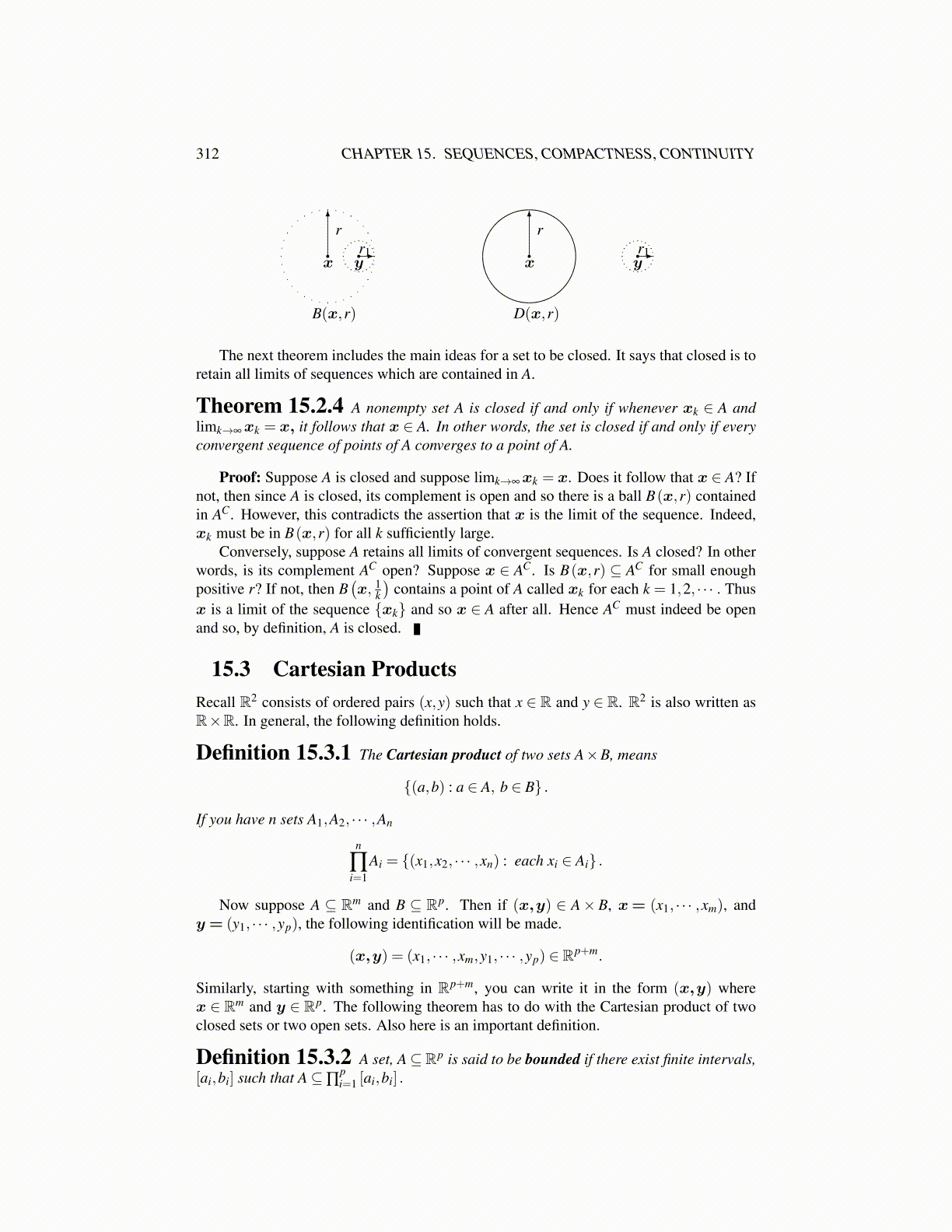 Similarly, starting with something in Rp+m, you can write it in the form (x,y) wherex ∈ Rm and y ∈ Rp. The following theorem has to do with the Cartesian product of twoclosed sets or two open sets. Also here is an important definition.