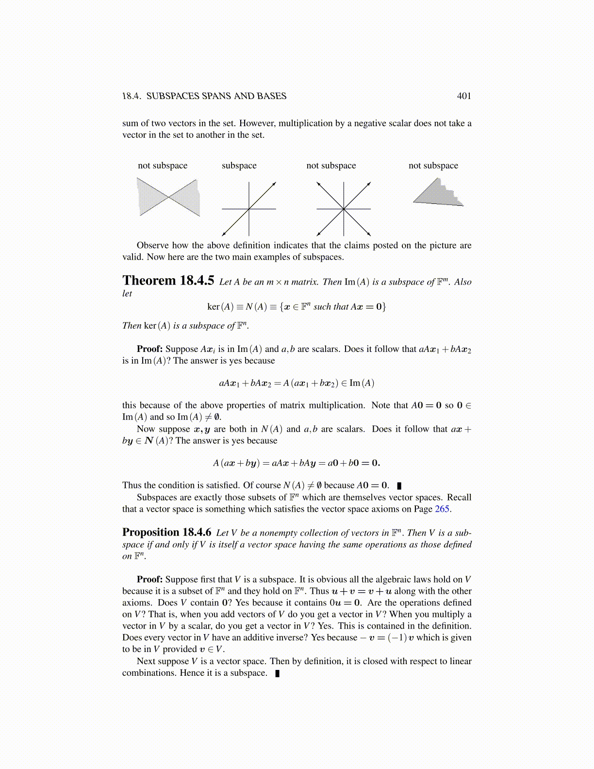Theorem 18.5.9 V is a nonzero subspace of Fn if and only if it has a basis.