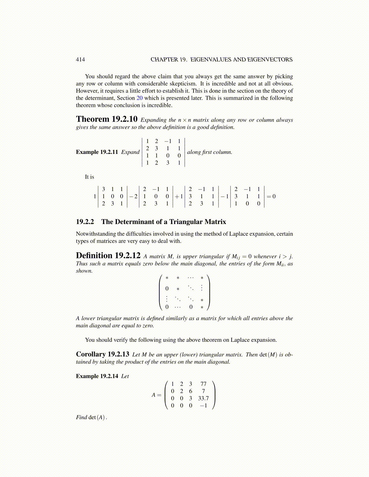 Example 19.2.25 Find the determinant of the matrix