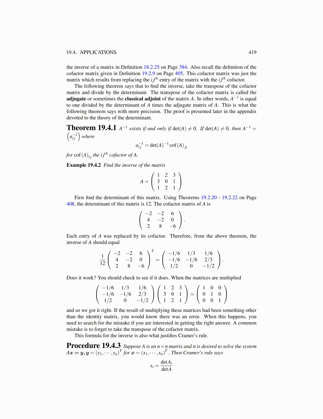 19.6 Matrices and the Dot ProductHere I will revert to consideration of Rn rather than Cn. I do this because this is not abook on linear algebra, only multi-variable calculus and I will give specialized treatments