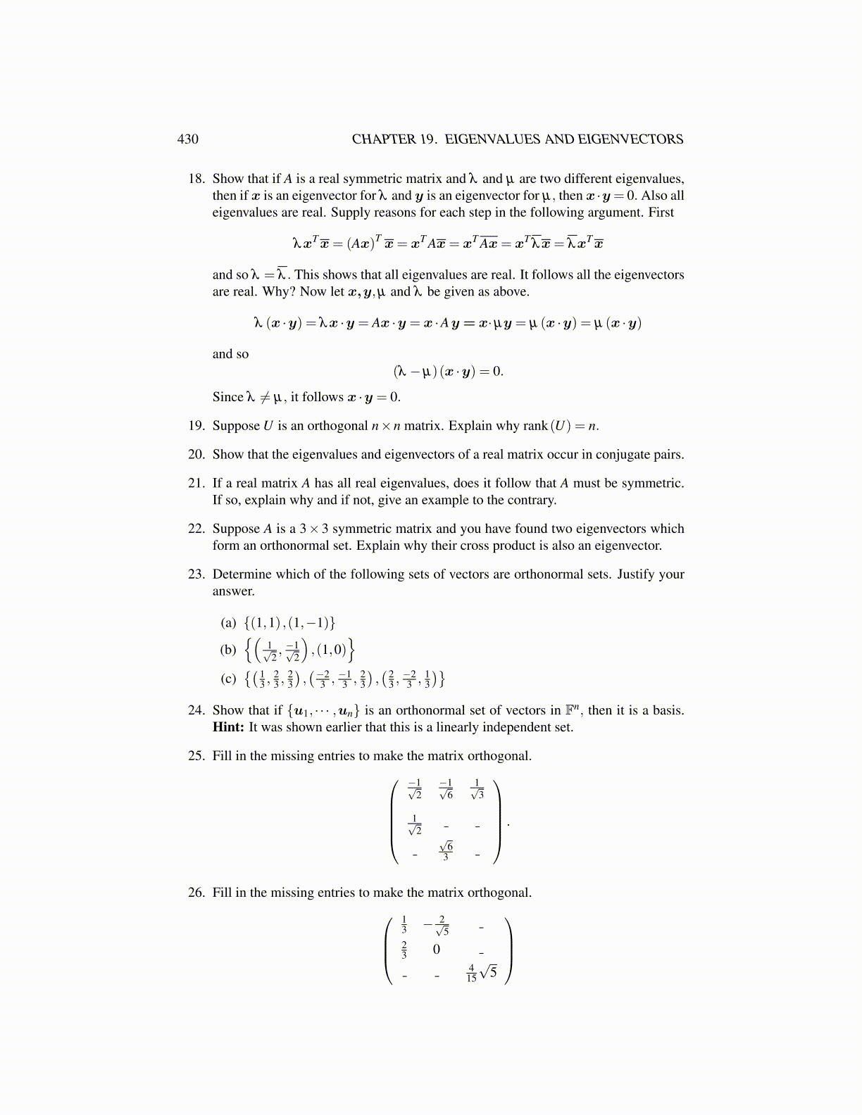 430 CHAPTER 19. EIGENVALUES AND EIGENVECTORS
