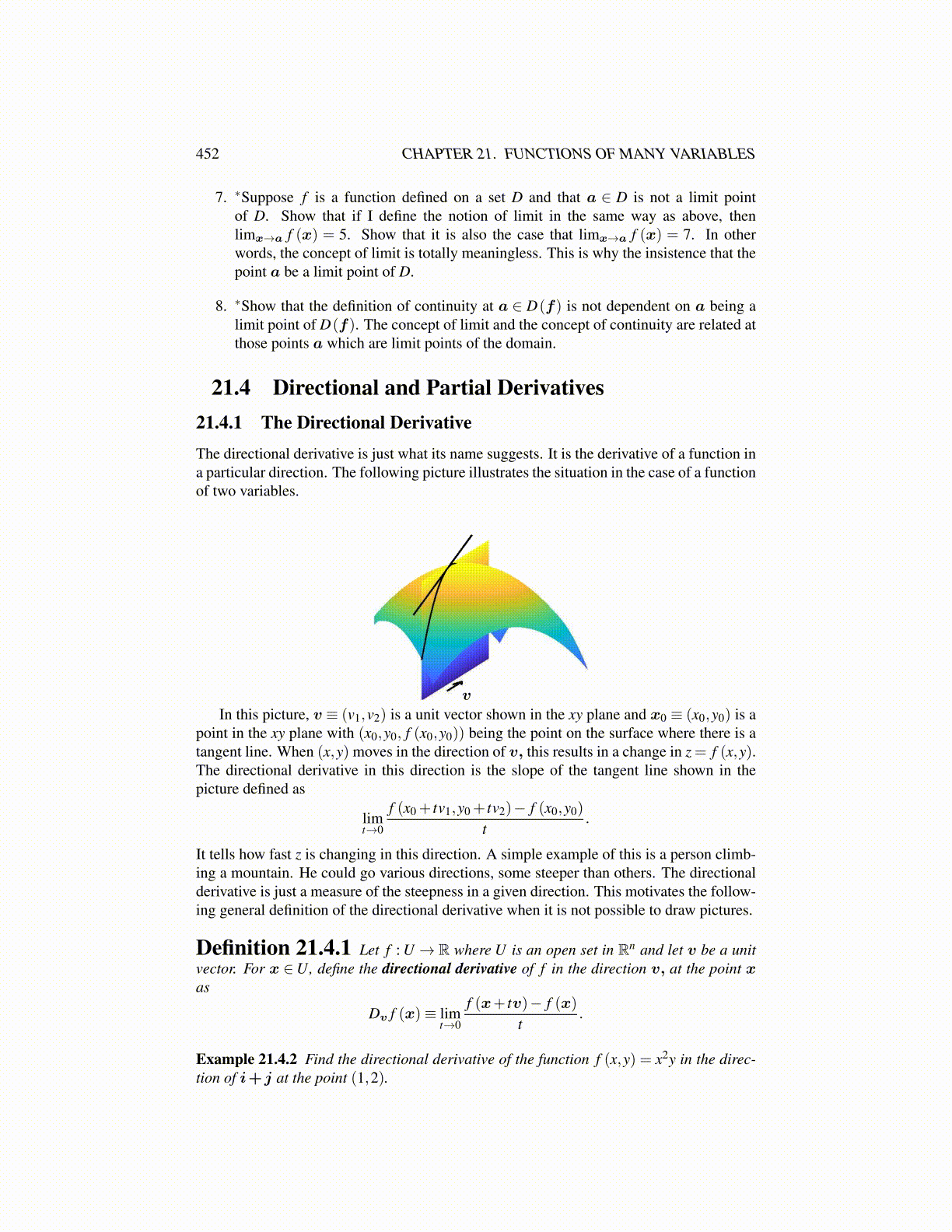Proposition 21.4.6 In the situation of Definition 21.4.5, if the partial derivatives arecontinuous, then for v a unit vector Dv f (x) = ∇ f (x) ·v.