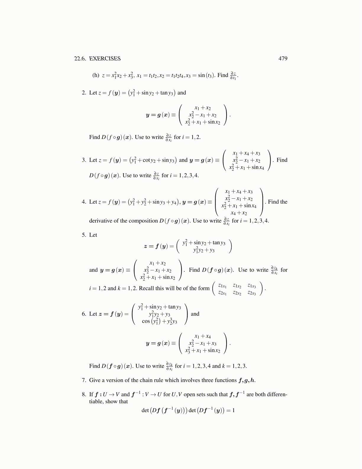22.6.2 The Derivative of the Inverse FunctionExample 22.6.5 Let f : U → V where U and V are open sets in Rnand f is one to oneand onto. Suppose also that f and f−1 are both differentiable. How are Df−1 and Dfrelated?