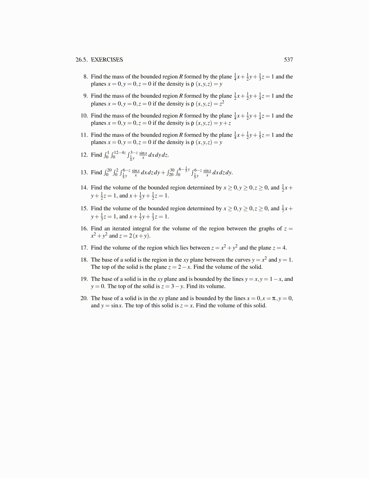 8. The moment about the x axis of a plate with density λ occupying the region R isdefined as my =