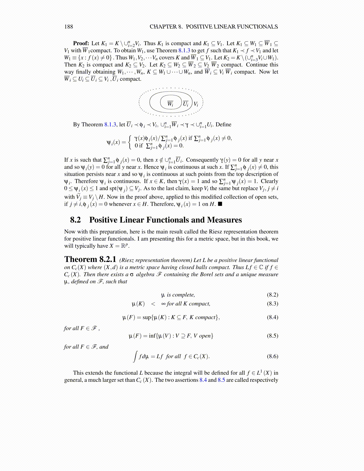 8.2 Positive Linear Functionals and MeasuresNow with this preparation, here is the main result called the Riesz representation theoremfor positive linear functionals. I am presenting this for a metric space, but in this book, wewill typically have X = Rp.