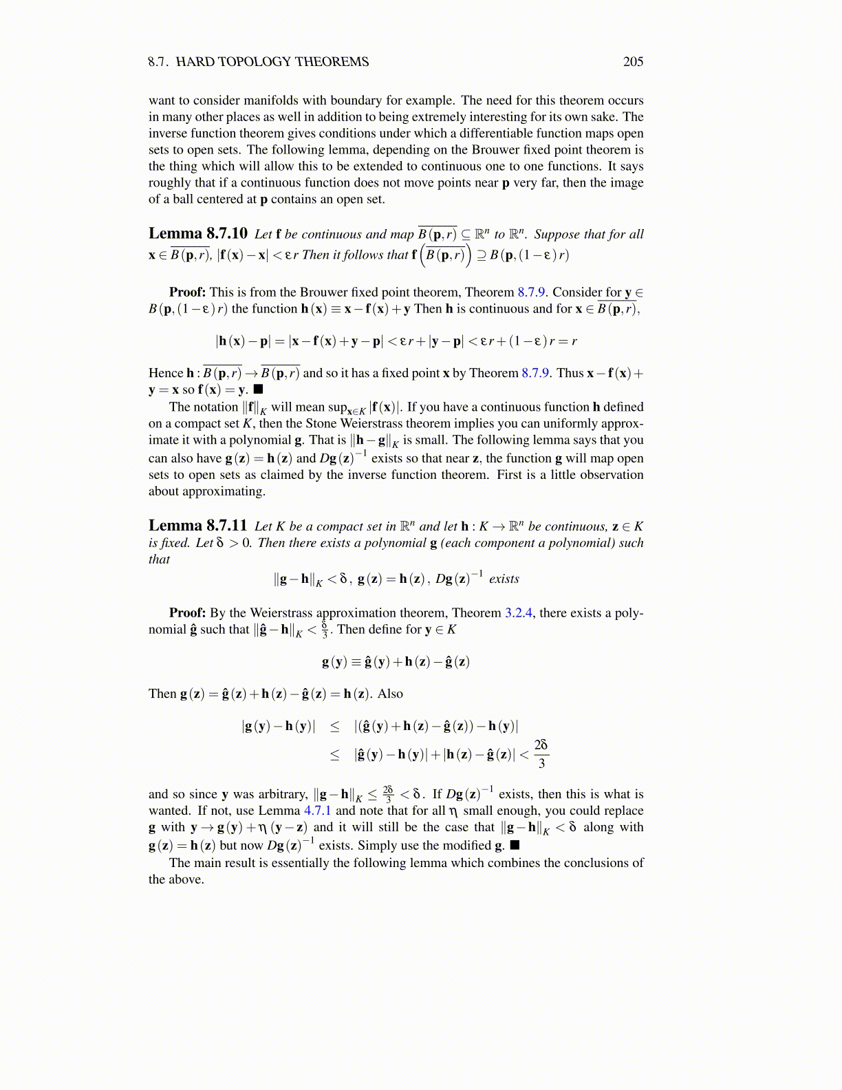 3 < δ . If Dg(z)−1 exists, then this is what iswanted. If not, use Lemma 4.7.1 and note that for all η small enough, you could replaceg with y→ g(y) + η (y− z) and it will still be the case that ∥g−h∥K < δ along withg(z) = h(z) but now Dg(z)−1 exists. Simply use the modified g. ■