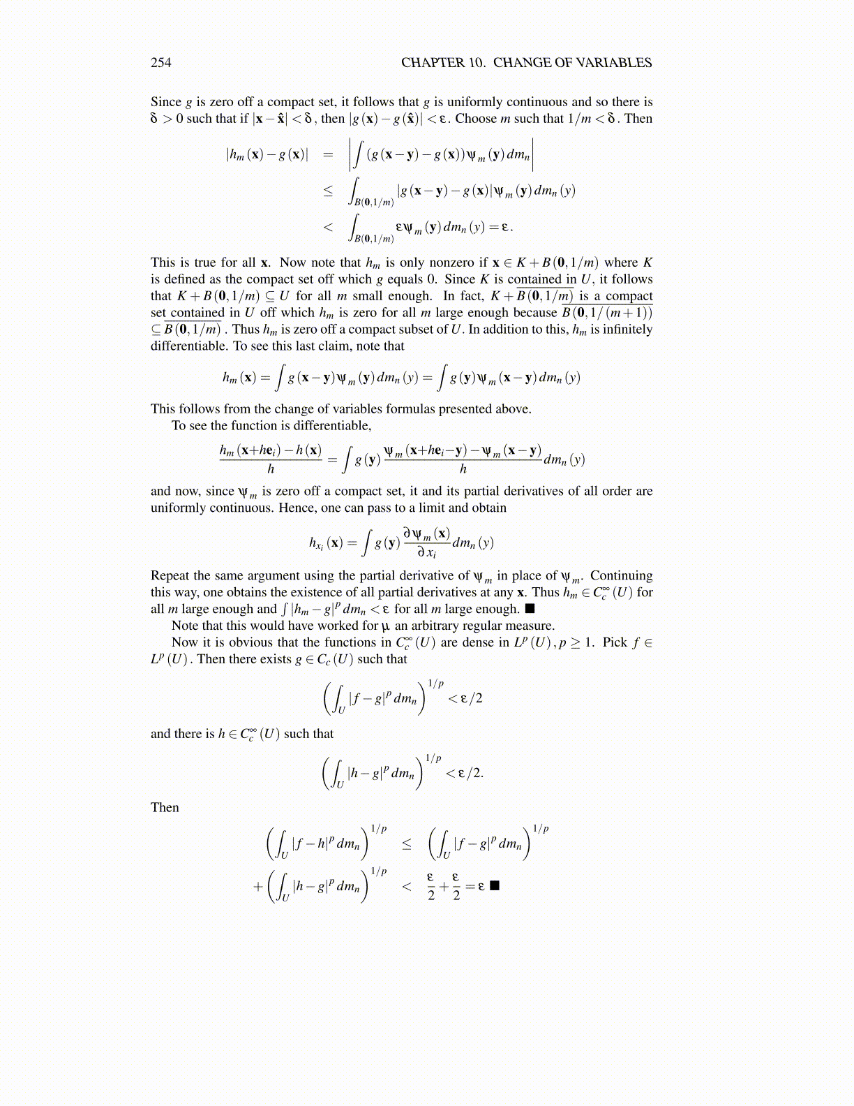 Since g is zero off a compact set, it follows that g is uniformly continuous and so there isδ > 0 such that if |x− x̂|< δ , then |g(x)−g(x̂)|< ε . Choose m such that 1/m < δ . Then