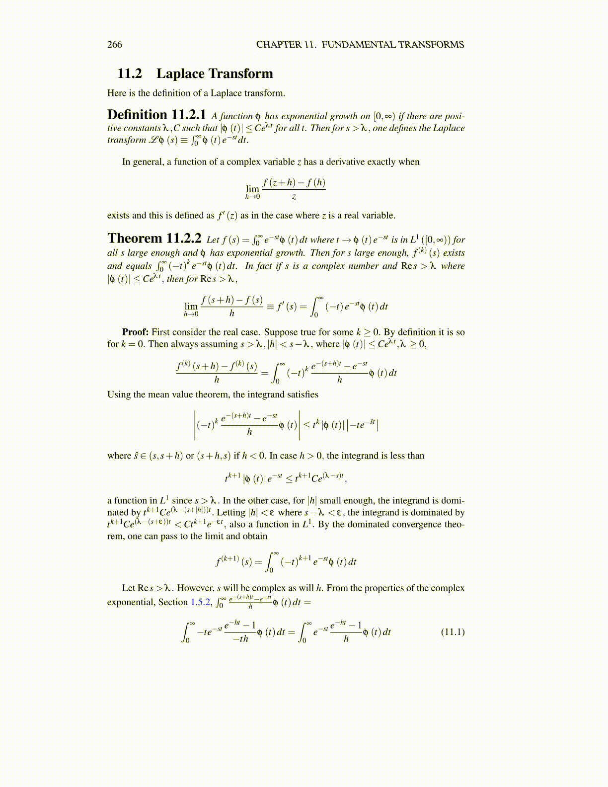 Proof: First consider the real case. Suppose true for some k ≥ 0. By definition it is sofor k = 0. Then always assuming s > λ , |h|< s−λ , where |φ (t)| ≤Ceλ t ,λ ≥ 0,