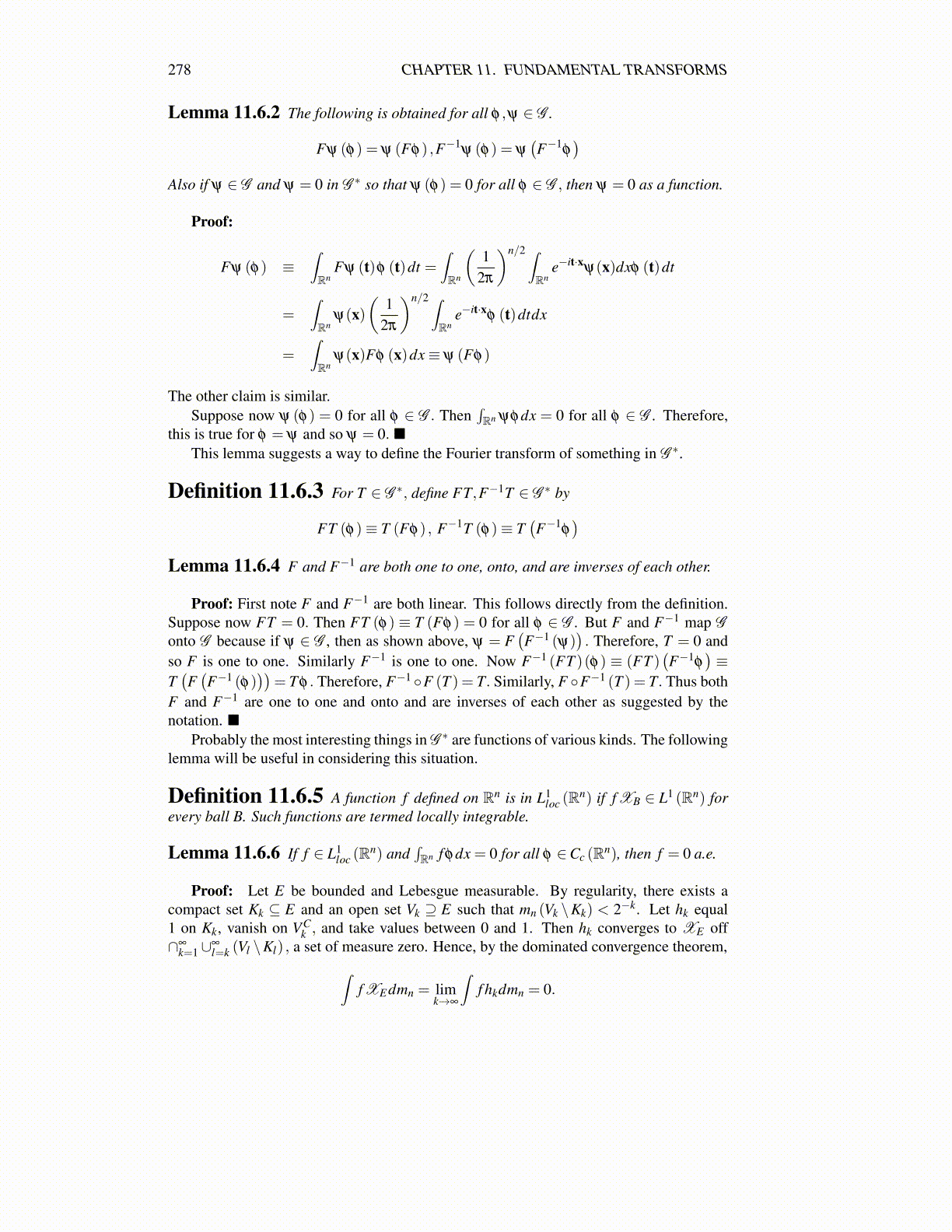 Lemma 11.6.4 F and F−1 are both one to one, onto, and are inverses of each other.
